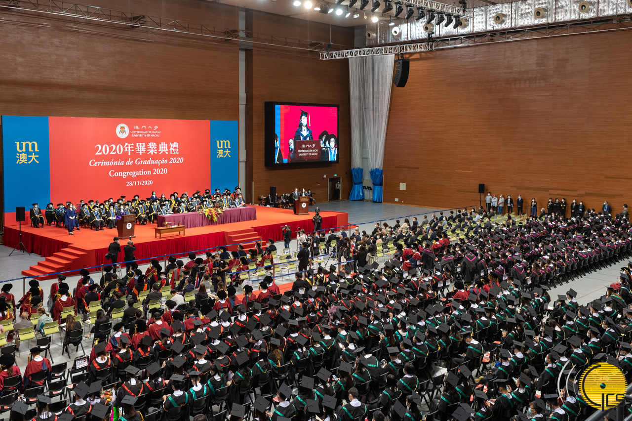 • Secretária para os Assuntos Sociais e Cultura, Ao Ieong U, em nome do Chefe do Executivo, presente na cerimónia de 2020 de graduação da Universidade de Macau.
