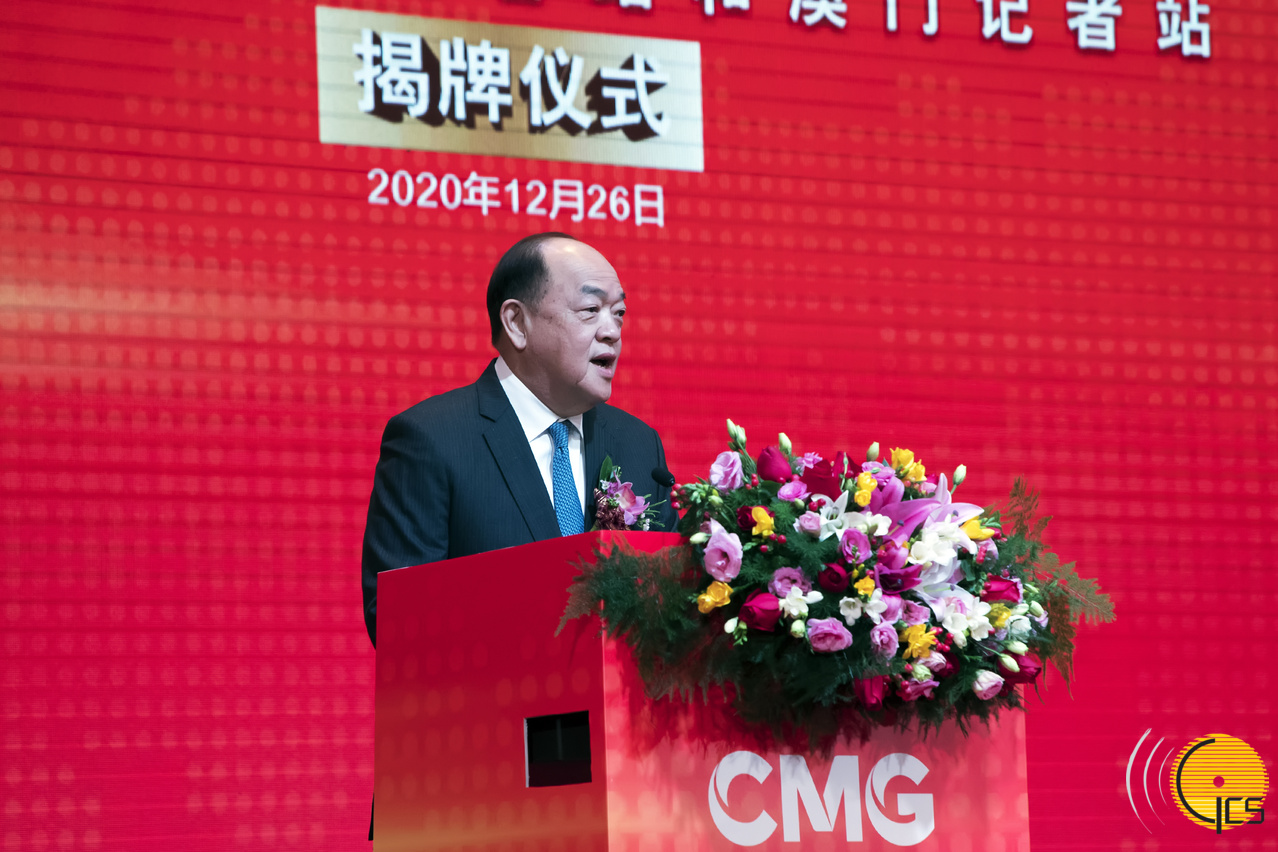 • Chefe do Executivo, Ho Iat Seng, discursa na cerimónia de descerramento da placa que marca a inauguração da representação da estação Ásia-Pacífico do China Media Group (CMG) e respectivas delegações de Hong Kong e Macau e cerimónia de lançamento das filmagens do documentário de grande escala "O Sabor de Macau".