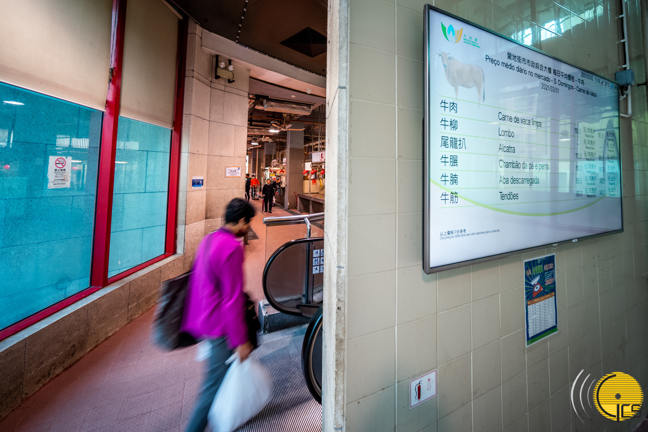 • No Mercado há um ecrã electrónico que mostra o preço médio diário da carne.