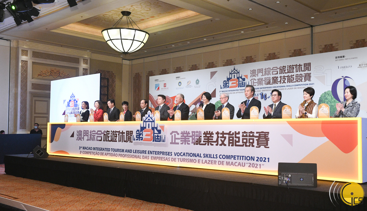 • Secretário para a Economia e Finanças, Lei Wai Nong, em representação do Chefe do Executivo, na 3.ª Competição de Aptidão Professional das Empresas de Turismo e Lazer de Macau 2021.