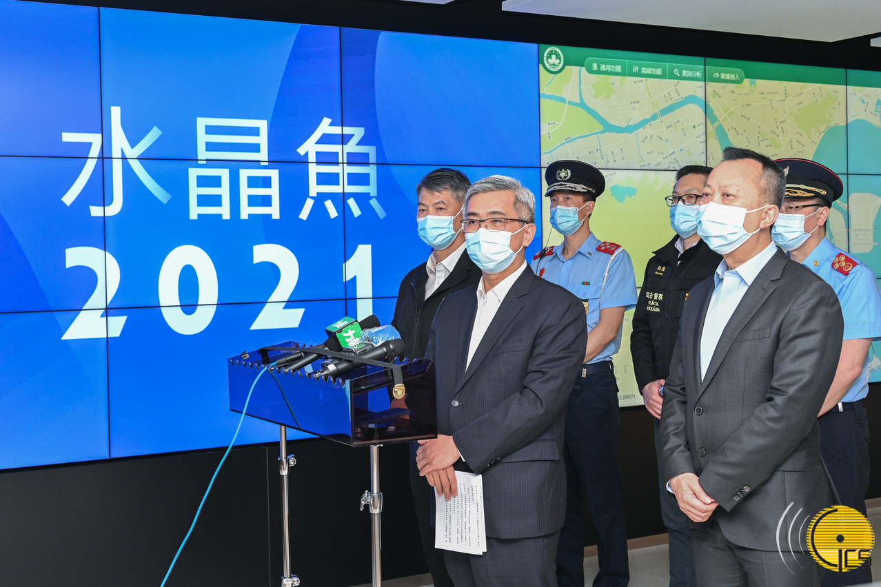 • Exercício de tufão “Peixe Cristal 2021”- Secretário para a Segurança e comandante de acção conjunta, Wong Sio Chak, faz balanço à comunicação social sobre eficiência do exercício.