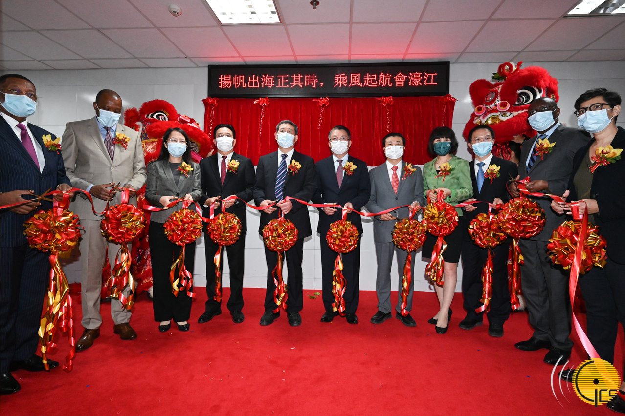 • Secretário para a Economia e Finanças, Lei Wai Nong, e outros convidados presidem à cerimónia de conclusão de obras, entrada em funcionamento e corte de fitas da Fábrica de Produtos Farmacêuticos da Ilha Verde da Guangzhou Farmacêutico Internacional (Macau) e Universidade de Macau.