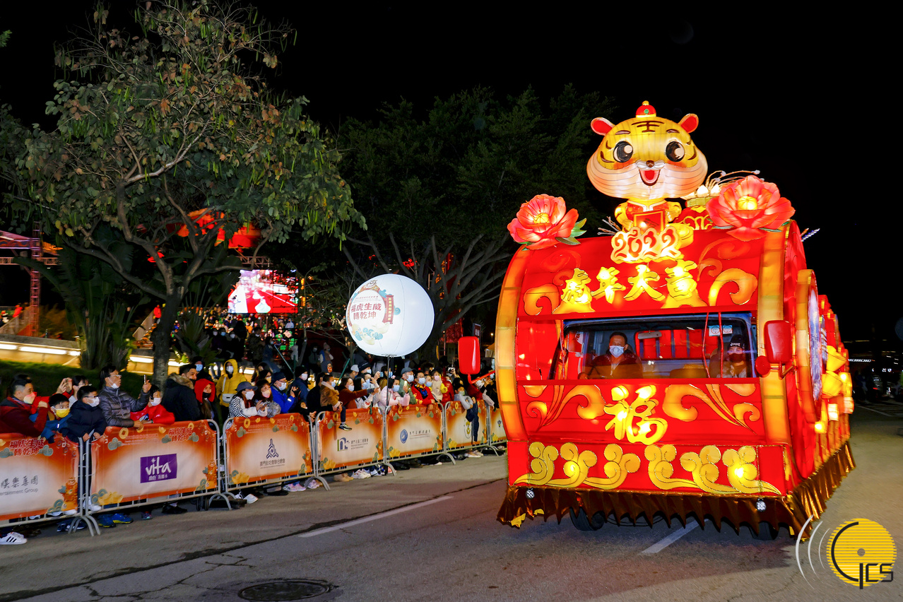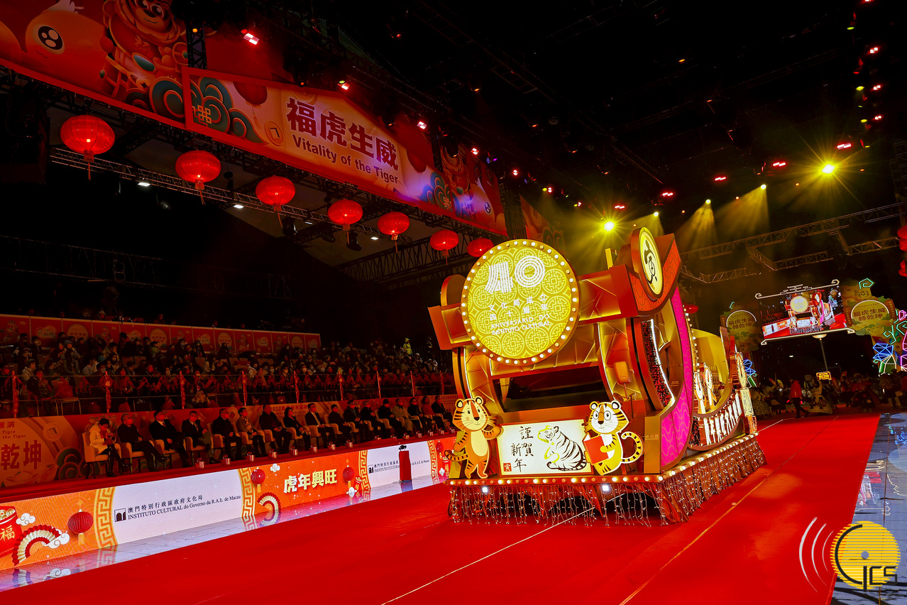 • “Virando a Fortuna com o poderoso Tigre”Parada de Celebração do Ano do Tigre 2022: 14 carros alegóricos e 22 grupos de animação artística provenientes do Interior da China e de Macau, partem na Praça do Lago Sai Van.