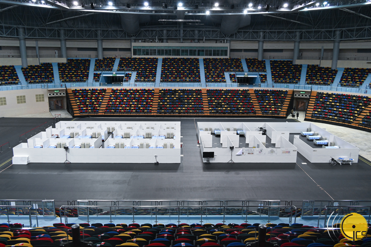 • Com vista a responder o eventual surgimento de tramissão comunitária de grande envergadura do novo tipo de coronavírus em Macau, o Governo da RAEM implantou o «Centro Comunitário de Tratamento de Infecção por Novo Tipo de Coronavírus de Macau» (Hospital de Campanha) na Nave Desportiva dos Jogos da Ásia Oriental de Macau e no Centro De Formação e Estágio de Atletas.