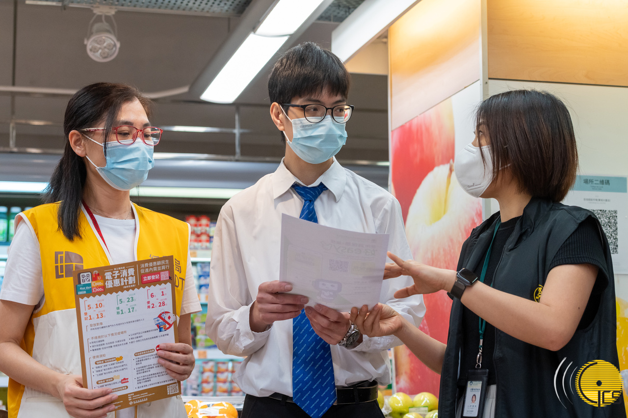O pessoal da Direcção dos Serviços de Economia e Desenvolvimento Tecnológico e do Conselho de Consumidores desloca-se a várias zonas da cidade para se inteirar do funcionamento da «Terceira ronda do Plano de benefícios de consumo por meio electrónico contra a epidemia» junto de comerciantes e de residentes, no primeiro dia da sua implementação (1 de Junho).