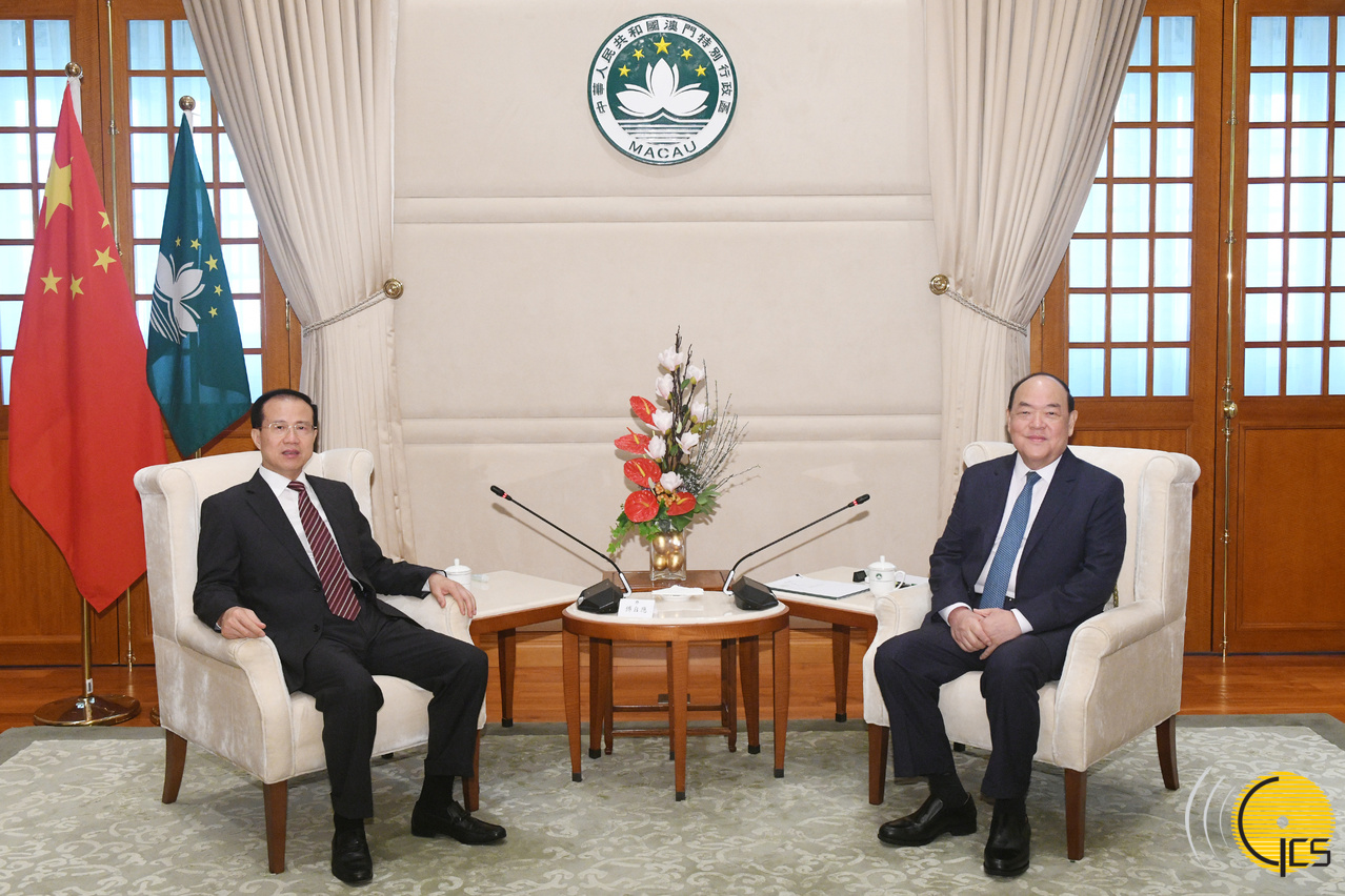 • Chefe do Executivo, Ho Iat Seng, e o ex-director do Gabinete de Ligação do Governo Popular Central na Região Administrativa Especial de Macau, Fu Ziying.