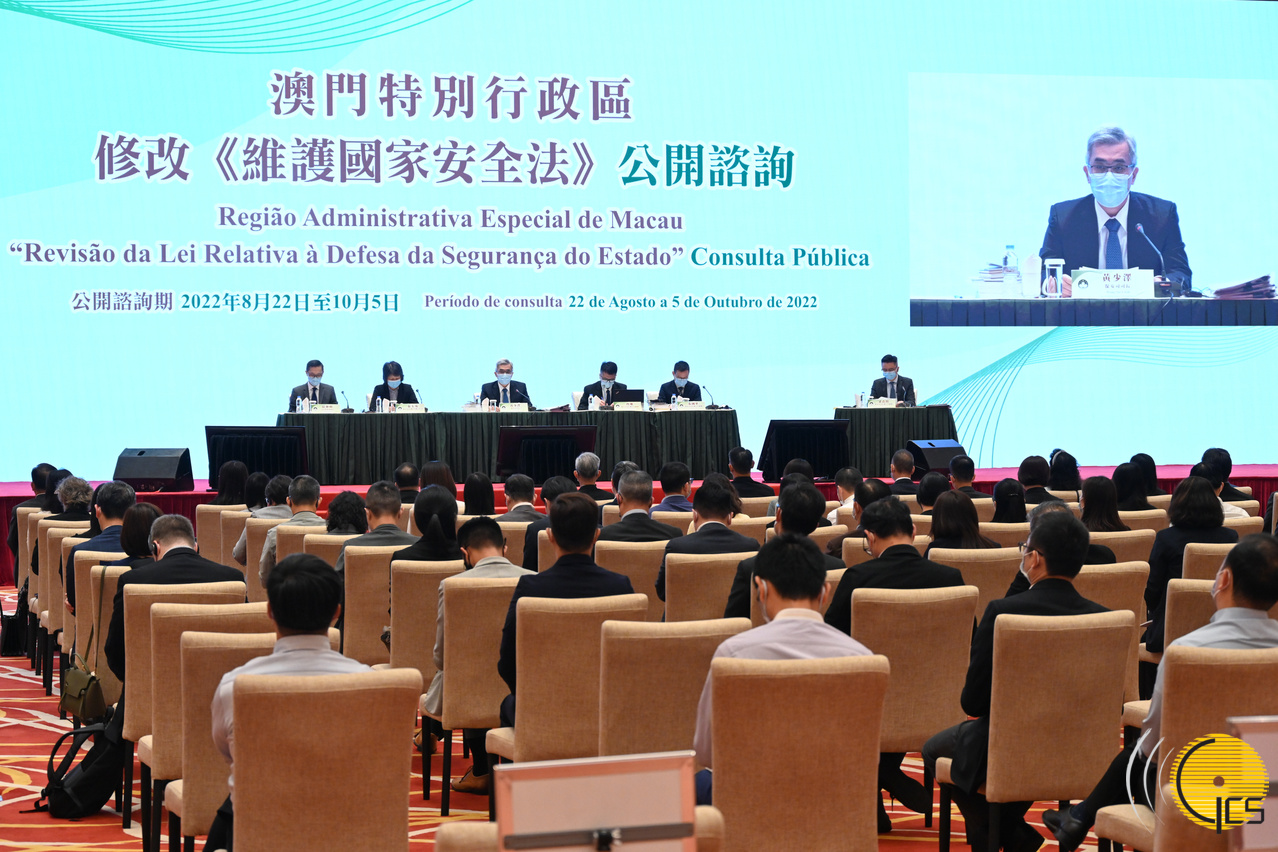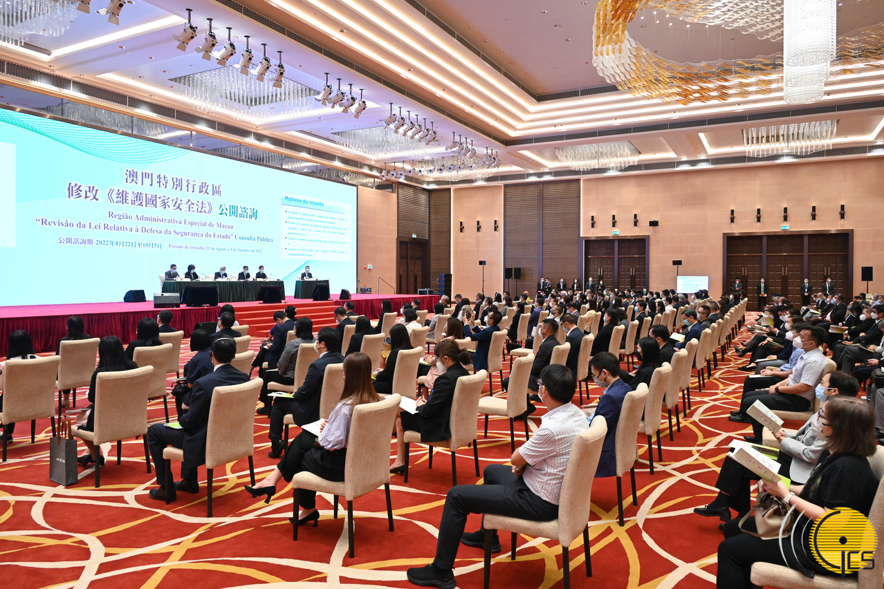 Governo da RAEM realiza a sessão de consulta pública respeitante à revisão da «Lei relativa à defesa da segurança do Estado» exclusivamente destinada ao sector de administração e justiça.