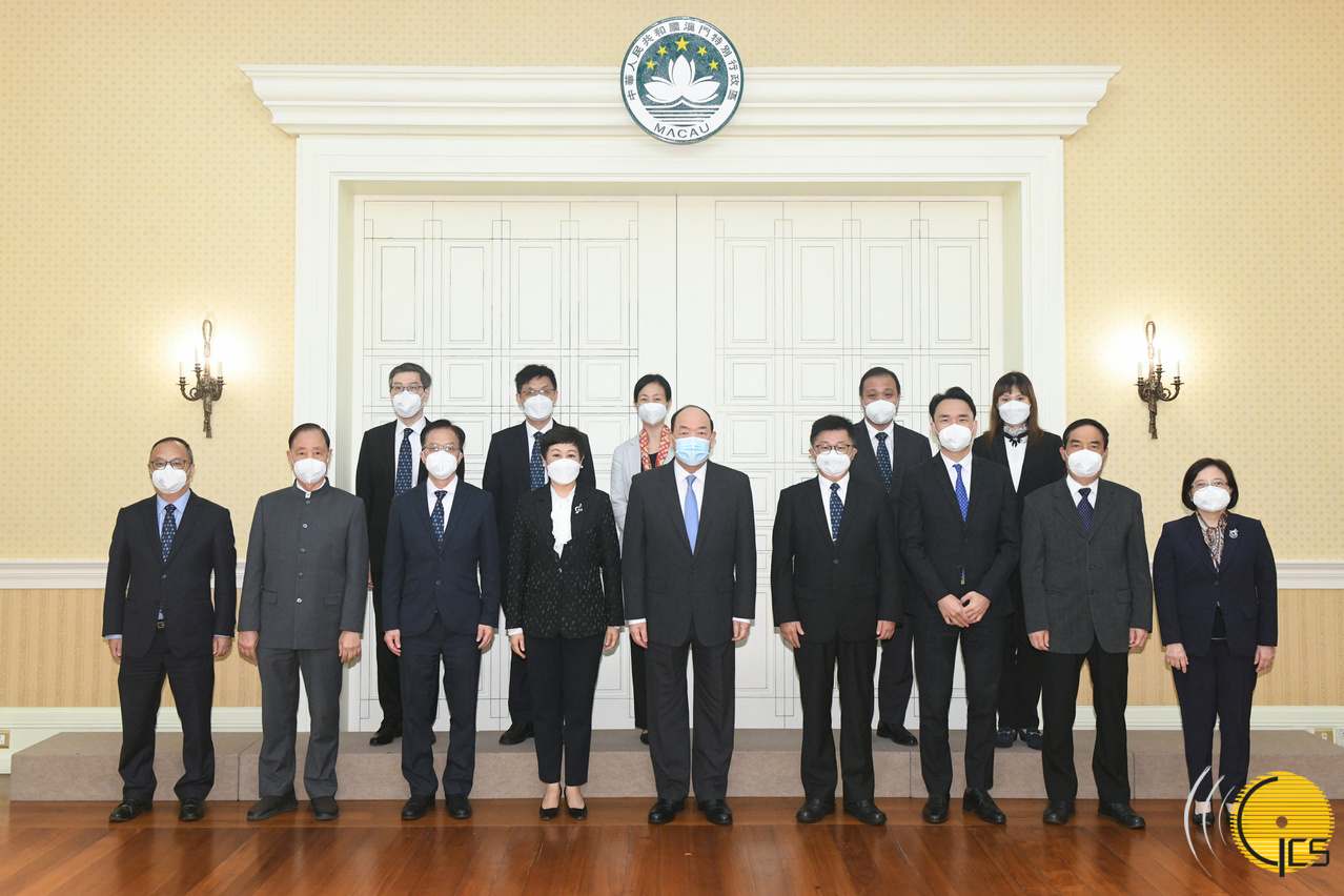 • Chefe do Executivo, Ho Iat Seng, com a presidente da Associação de Educação de Macau, Chan Hong, e outros associados.