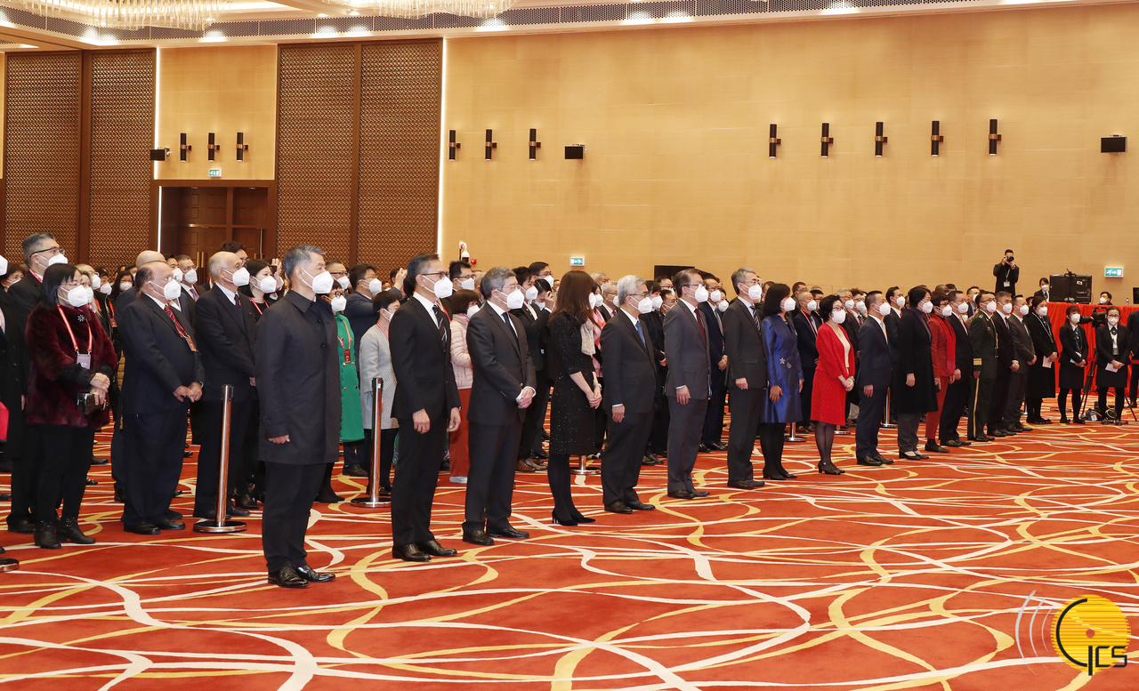 • Chefe do Executivo, Ho Iat Seng, e convidados de honra brindam com os convidados na recepção comemorativa do 23º Aniversário do Estabelecimento da Região Administrativa Especial de Macau.