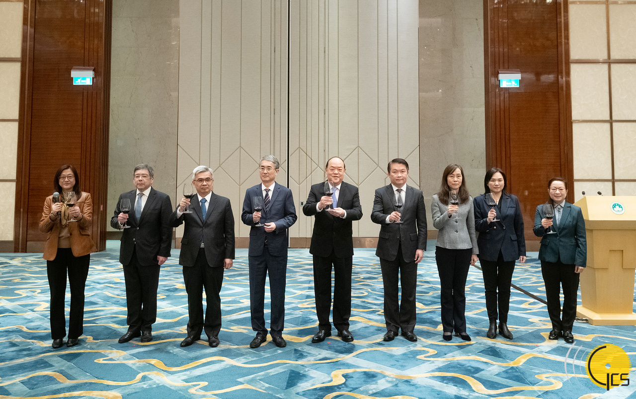 • Chefe do Executivo, Ho Iat Seng, e outros dirigentes brindam com os convidados no almoço oferecido aos responsáveis dos órgãos de comunicação social de língua chinesa de Macau.