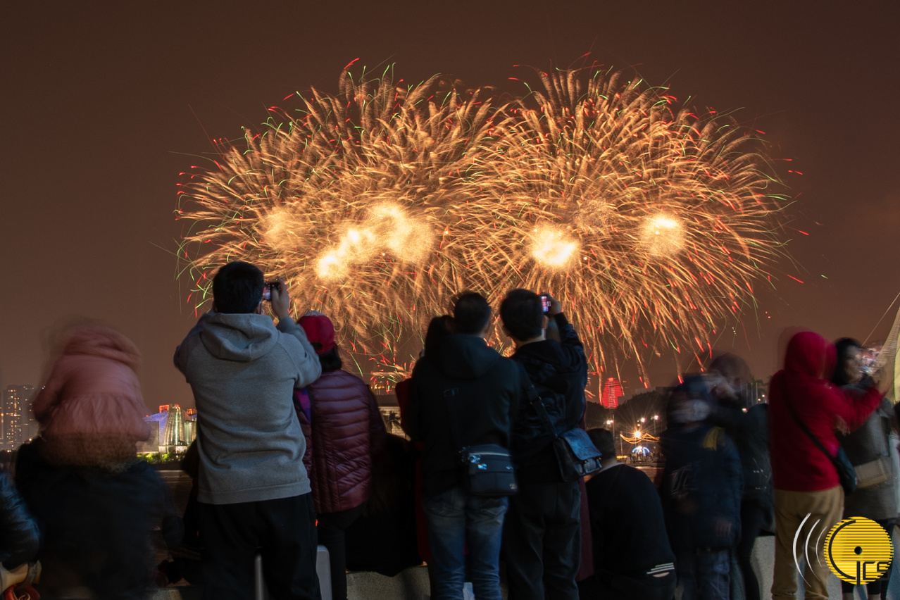 • Espectáculo de Fogo-de-artifício cria um ambiente festivo de luz com exibições pirotécnicas nos feriados do Ano Novo Lunar.