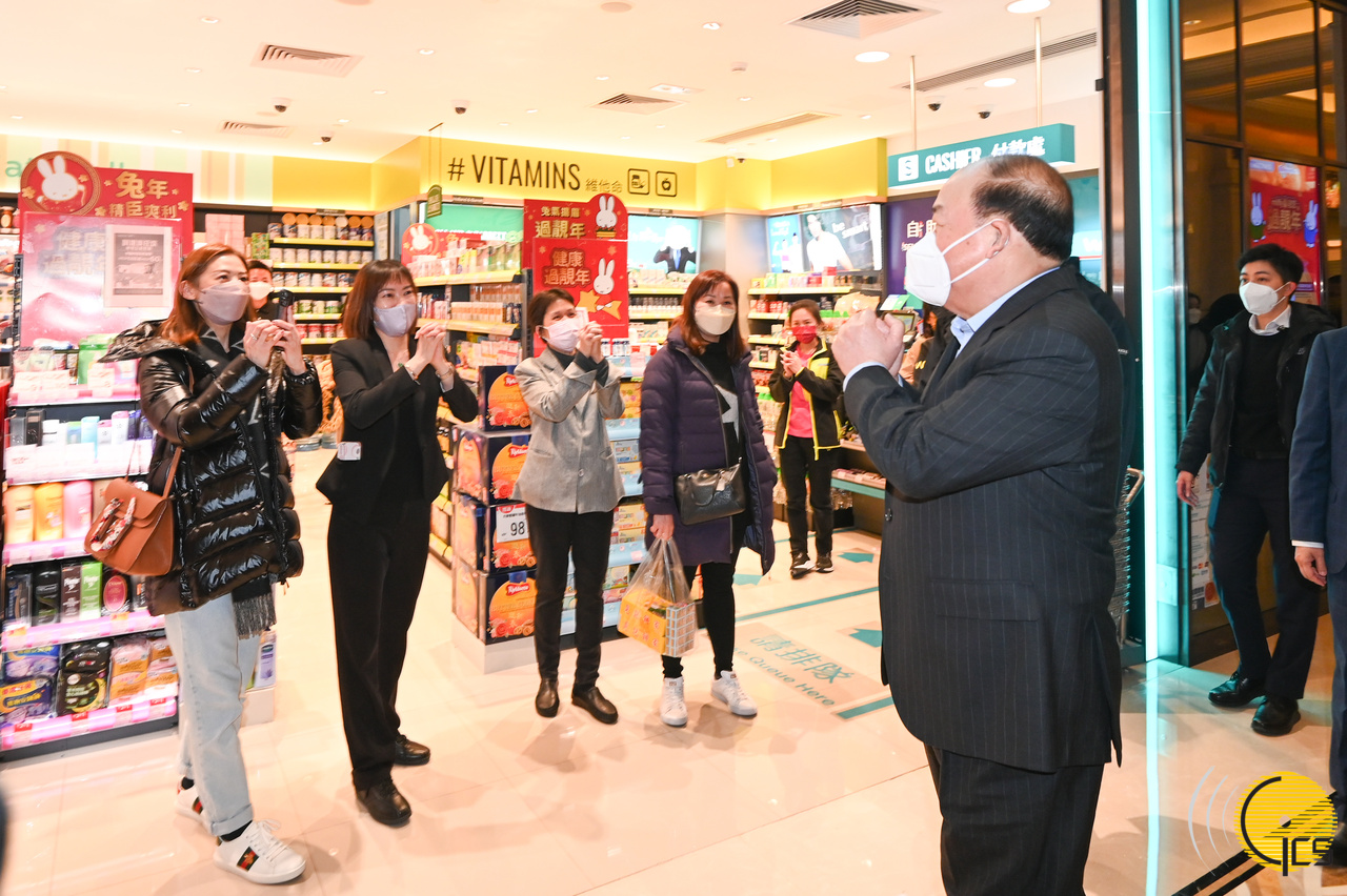 • Chefe do Executivo, Ho Iat Seng, apresenta saudações festivais aos comerciantes, residentes e turistas, durante a visita ao Palácio Grande Lisboa.