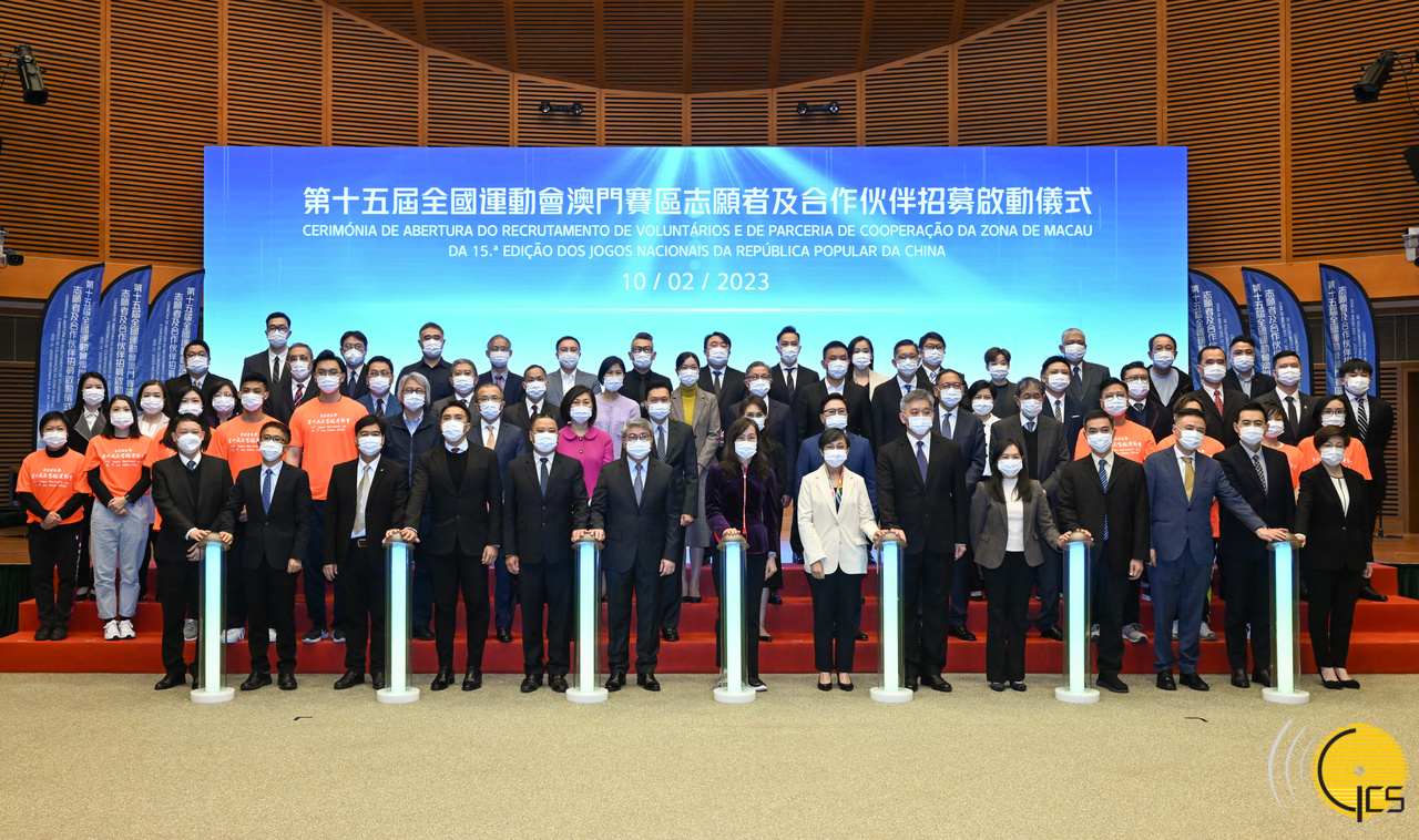 • Secretária para os Assuntos Sociais e Cultura, Ao Ieong U, na «Cerimónia de abertura do recrutamento de voluntários e de parceria de cooperação da zona de Macau da 15.ª edição dos Jogos Nacionais da República Popular da China».