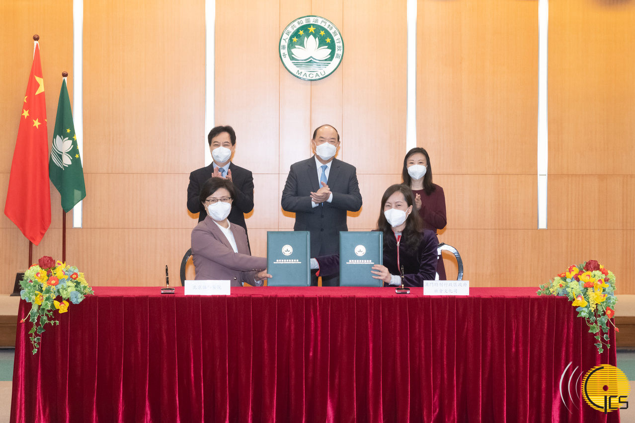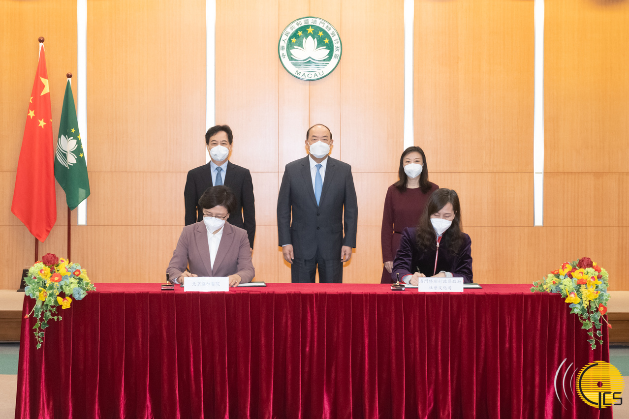 Chefe do Executivo, Ho Iat Seng, testemunha a cerimónia de assinatura do acordo de cooperação entre a Secretaria para os Assuntos Sociais e Cultura da Região Administrativa Especial de Macau e Peking Union Medical College Hospital.