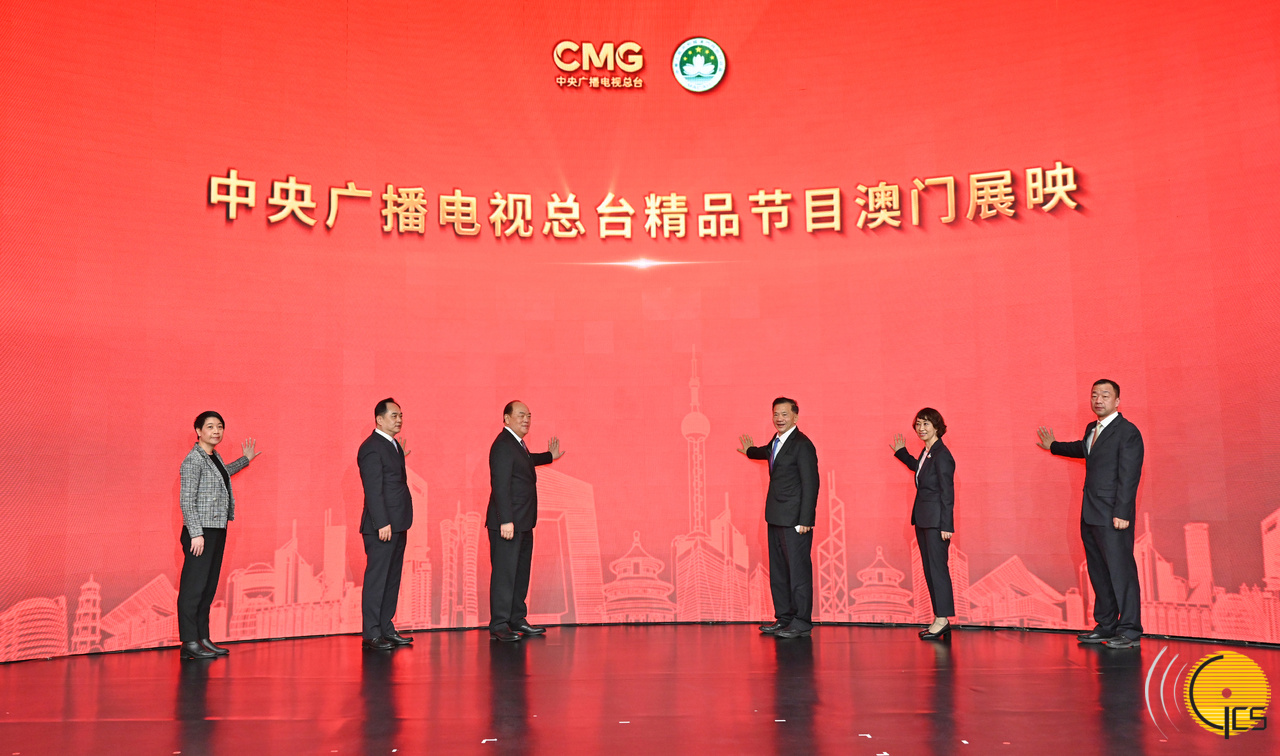 • Chefe do Executivo, Ho Iat Seng, e convidados de honra presidem à cerimónia de lançamento da exibição exclusiva para Macau de programas premium do China Media Group, em Pequim.