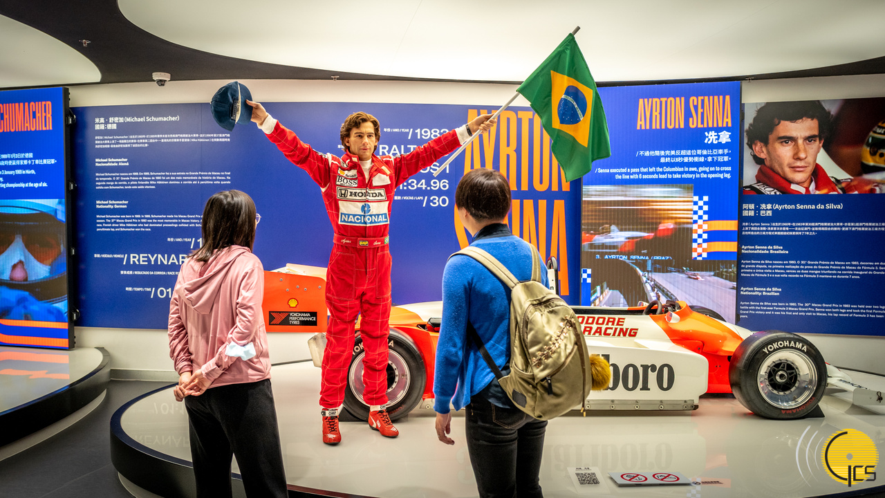 • Estátua de cera de Ayrton Senna no Museu do Grande Prémio de Macau. Ayrton Senna venceu o GPM de Fórmula 3 em 1983, e o seu recorde de volta mais rápida manteve-se durante sete anos.