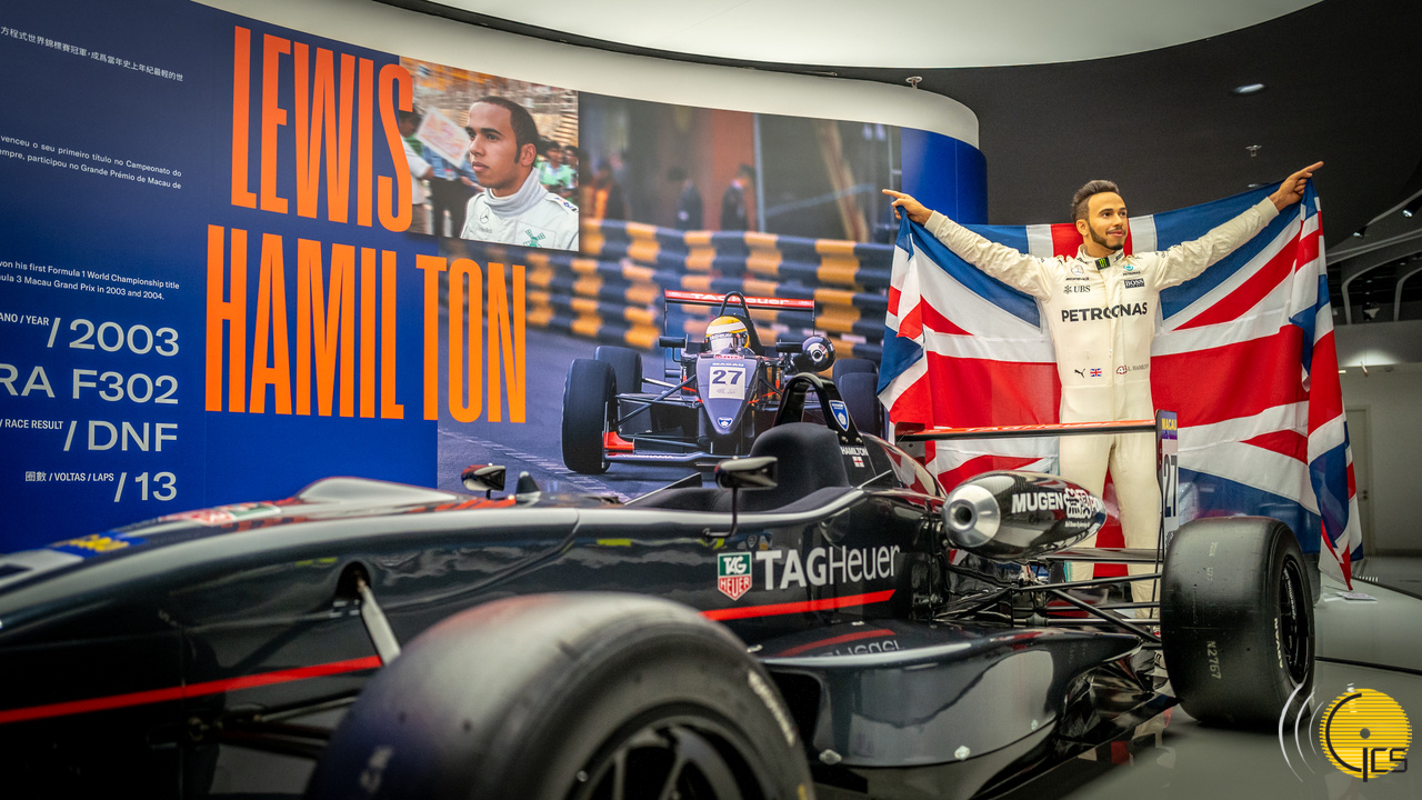 • Estátua de cera de Lewis Hamilton no Museu do Grande Prémio de Macau. Lewis Hamilton, sete vezes campeão mundial de Fórmula 1, participou no GPM de Fórmula 3 em 2003 e 2004.