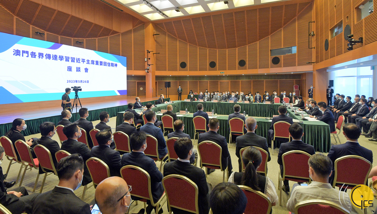 • Colóquio destinado aos diversos sectores de Macau para transmissão e aprendizagem do espírito da importante carta de resposta do Presidente Xi Jinping, realizado no Salão de Convenções do Centro de Convenções do Centro de Ciência de Macau.