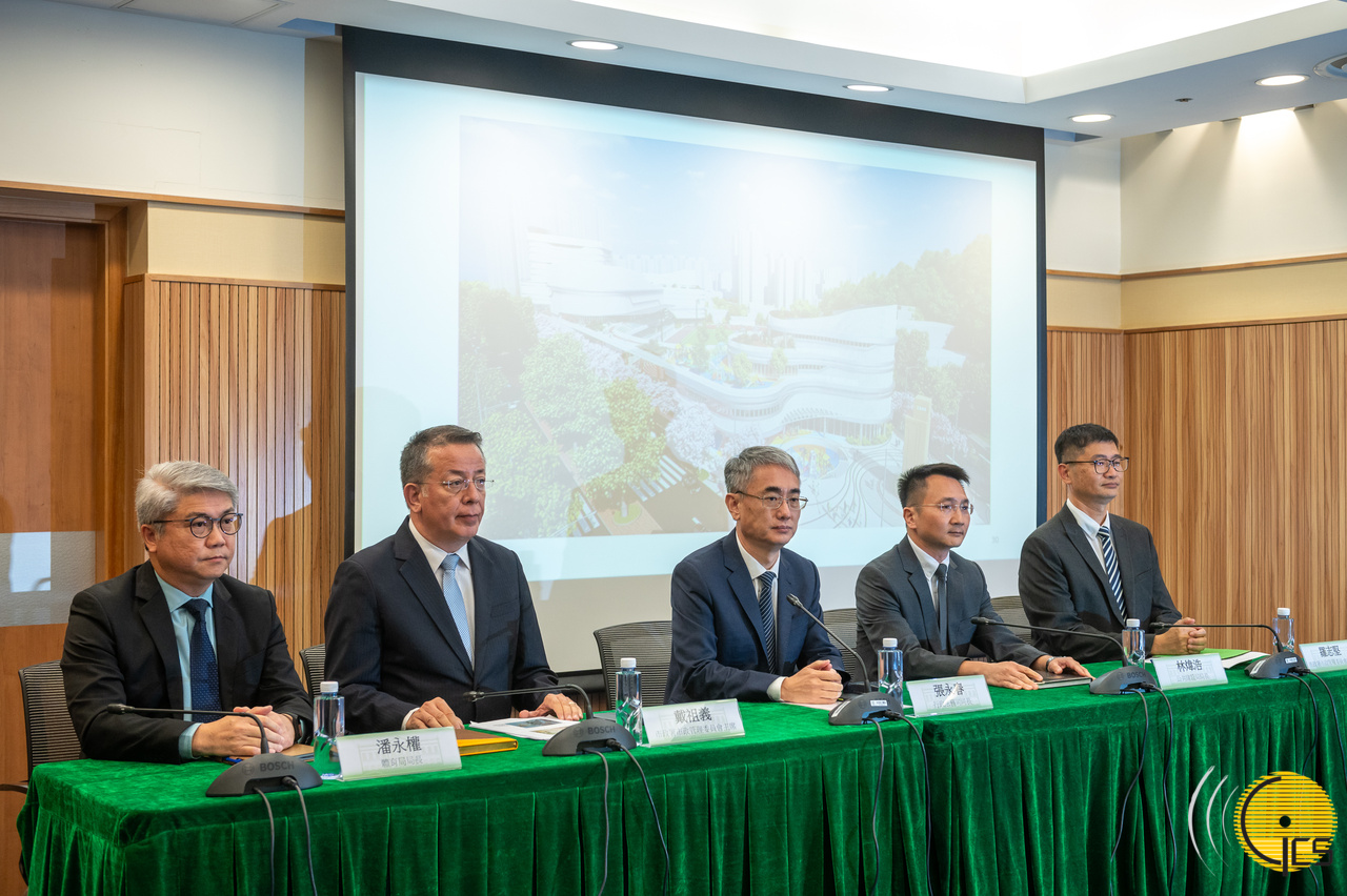 • Secretário para a Administração e Justiça, André Cheong, na conferência de imprensa sobre os projectos do “Parque Desportivo para os Cidadãos” e do “Campo de Aventuras Juvenis da Praia de Hac Sá e Optimização das Instalações Complementares Circundantes”.