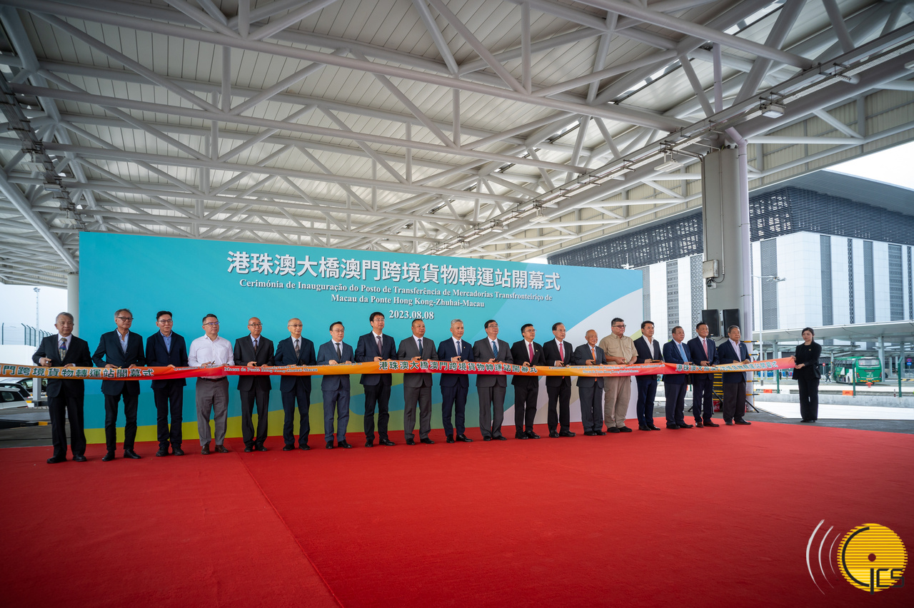 Cerimónia de inauguração do posto de transferência de mercadorias transfronteiriço de Macau na Ponte Hong Kong-Zhuhai-Macau.