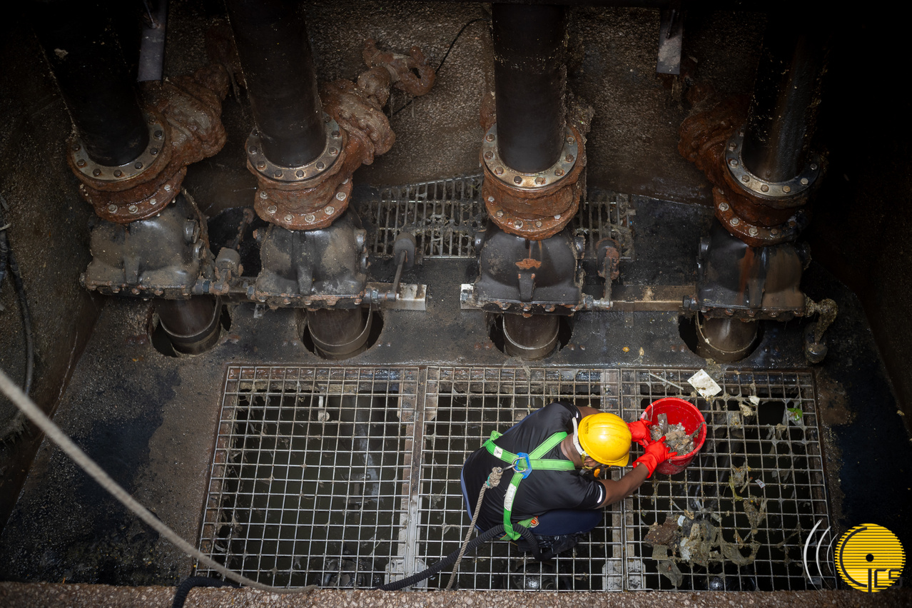 • Independentemente da hora do dia, o pessoal do IAM responsável pela drenagem desloca-se às diversas zonas para examinar, desobstruir e manter a fluidez dos esgotos.