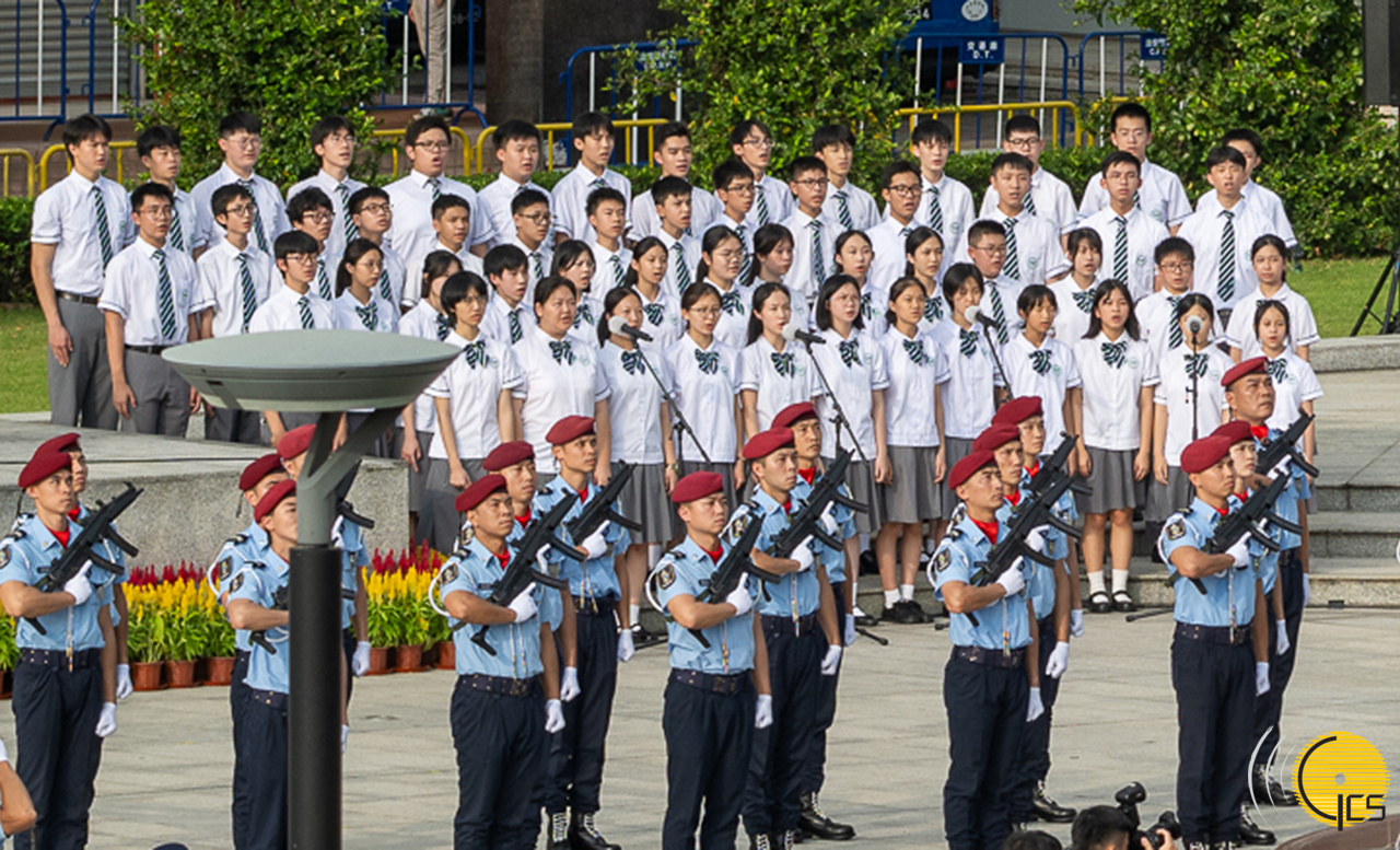 • Cerca de cem alunos do ensino secundário cantam o hino nacional na cerimónia do içar da bandeira.