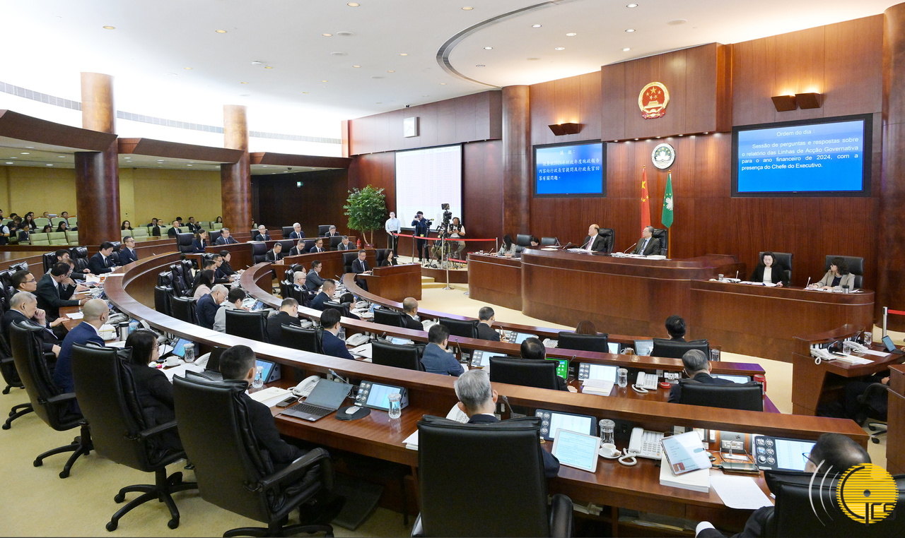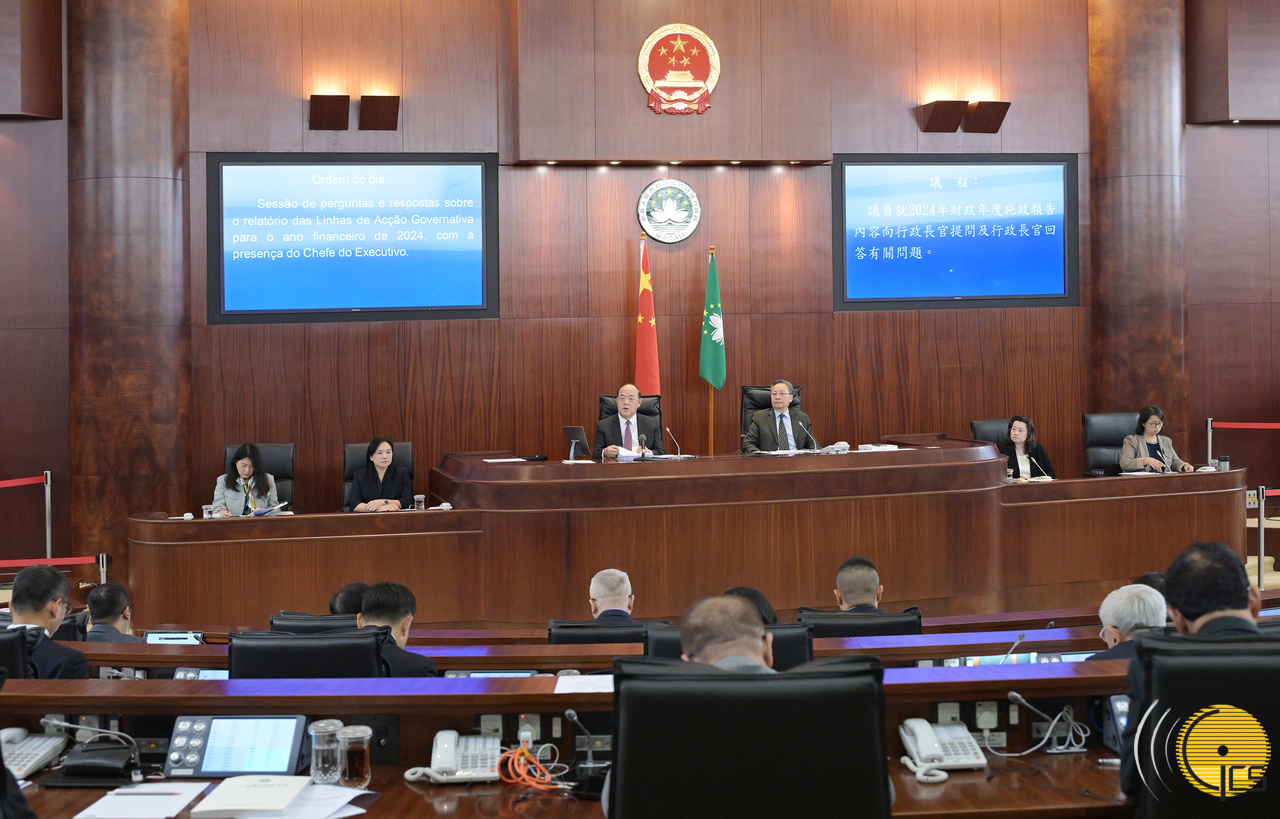• Chefe do Executivo, Ho Iat Seng, responde às perguntas dos deputados sobre o Relatório das Linhas de Acção Governativa para o Ano Financeiro de 2024, na sessão plenária da Assembleia Legislativa.