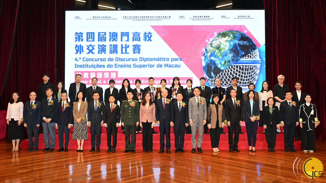 • Secretária para os Assuntos Sociais e Cultura, Ao Ieong U, na fase final e cerimónia de entrega de prémios do 4º Concurso de Discurso Diplomático para Instituições do Ensino Superior de Macau.