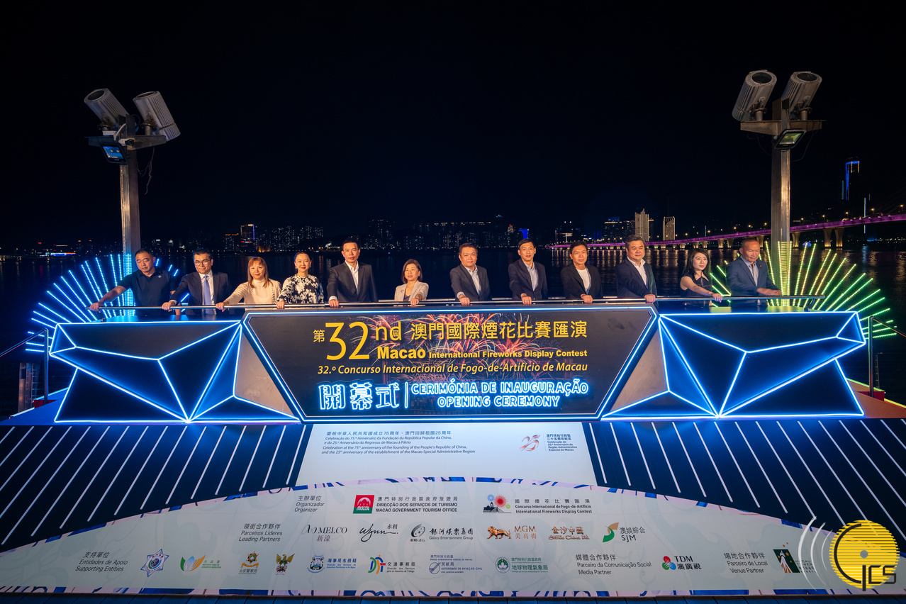Cerimónia de abertura do Arraial do Fogo-de-Artifício “Celebração do 75.º Aniversário da Fundação da República Popular da China e do 25.º Aniversário do Regresso de Macau à Pátria - 32.° Concurso Internacional de Fogo-de-Artifício de Macau”.