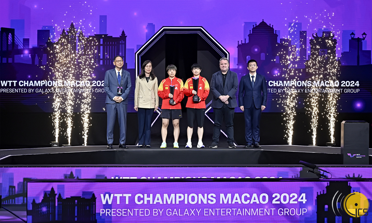 • Entrega de prémio à campeã de singulares femininos do Torneio de Campeões WTT Macau 2024, Sun Yingsha.