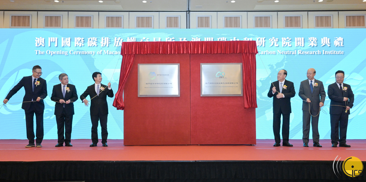 • Chefe do Executivo, Ho Iat Seng, preside à cerimónia do descerramento de lápide da «Macau Internacional Troca de Emissões de Carbono Limitada» e da «Global Carbono Neutro Investigação Instituto (Macau) Limitada».