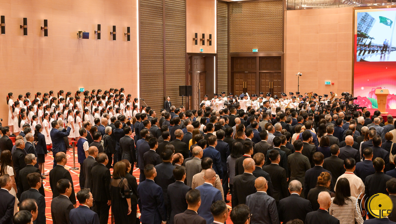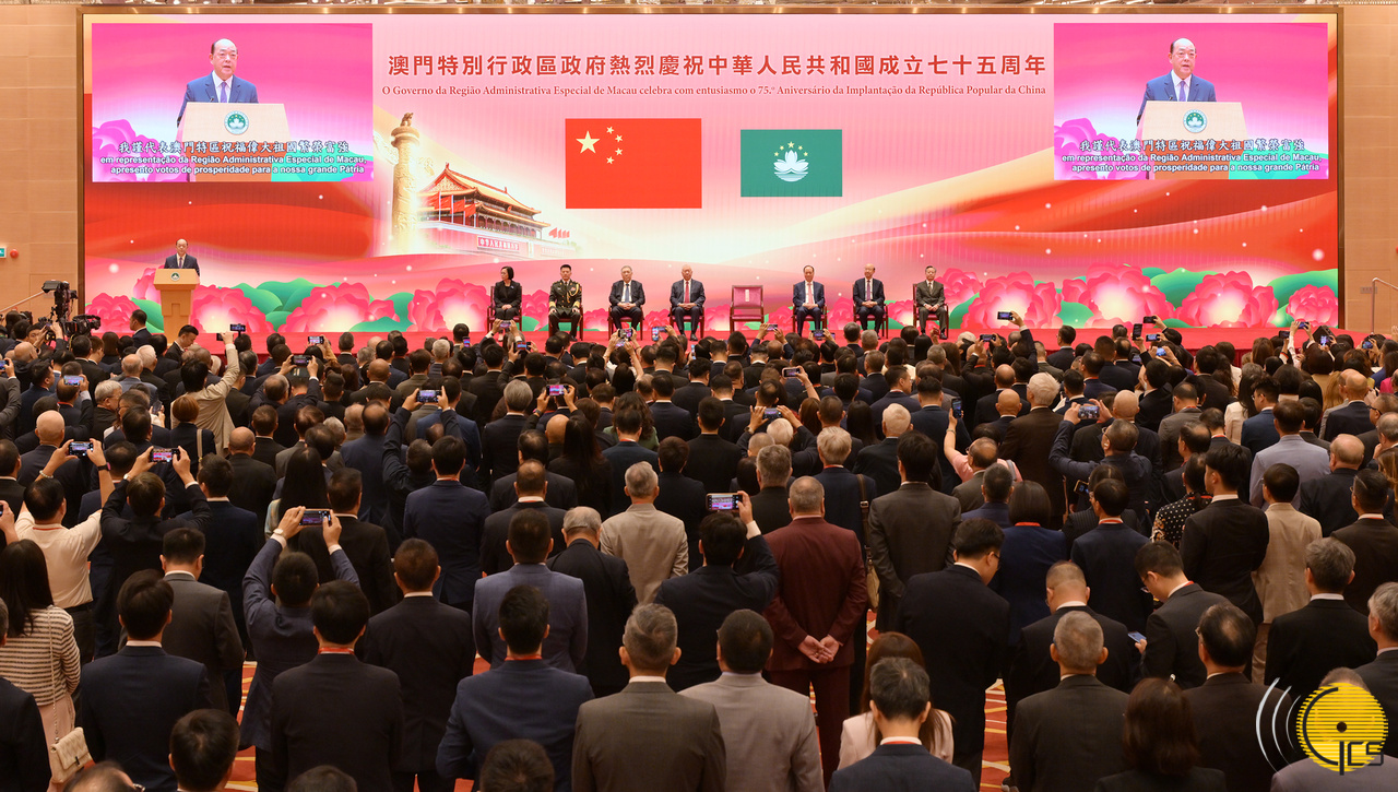 Governo da Região Administrativa Especial de Macau realiza cerimónia do içar das bandeiras e recepção comemorativa, no âmbito das comemorações do 75.º aniversário da implantação da República Popular da China.