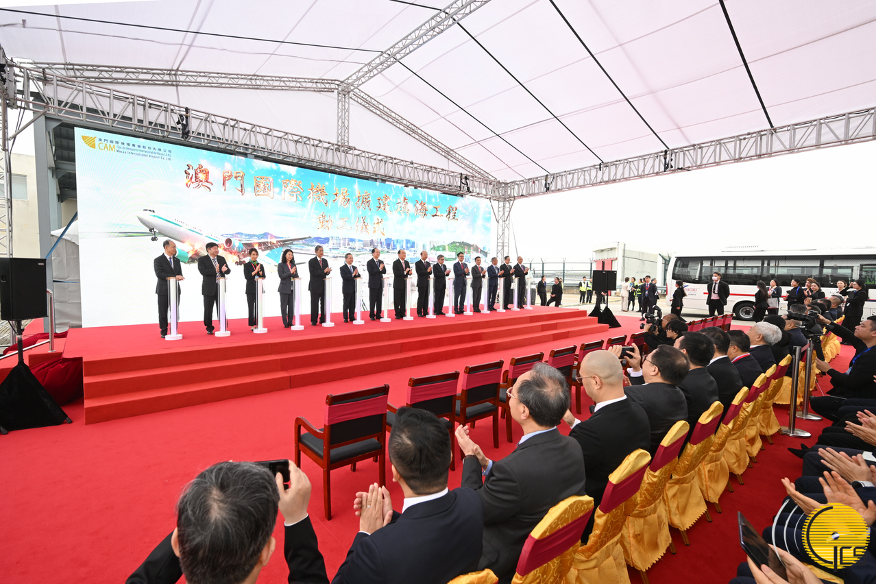 • Chefe do Executivo, Ho Iat Seng, preside à cerimónia de lançamento da primeira pedra do aterro e ampliação do Aeroporto Internacional de Macau.