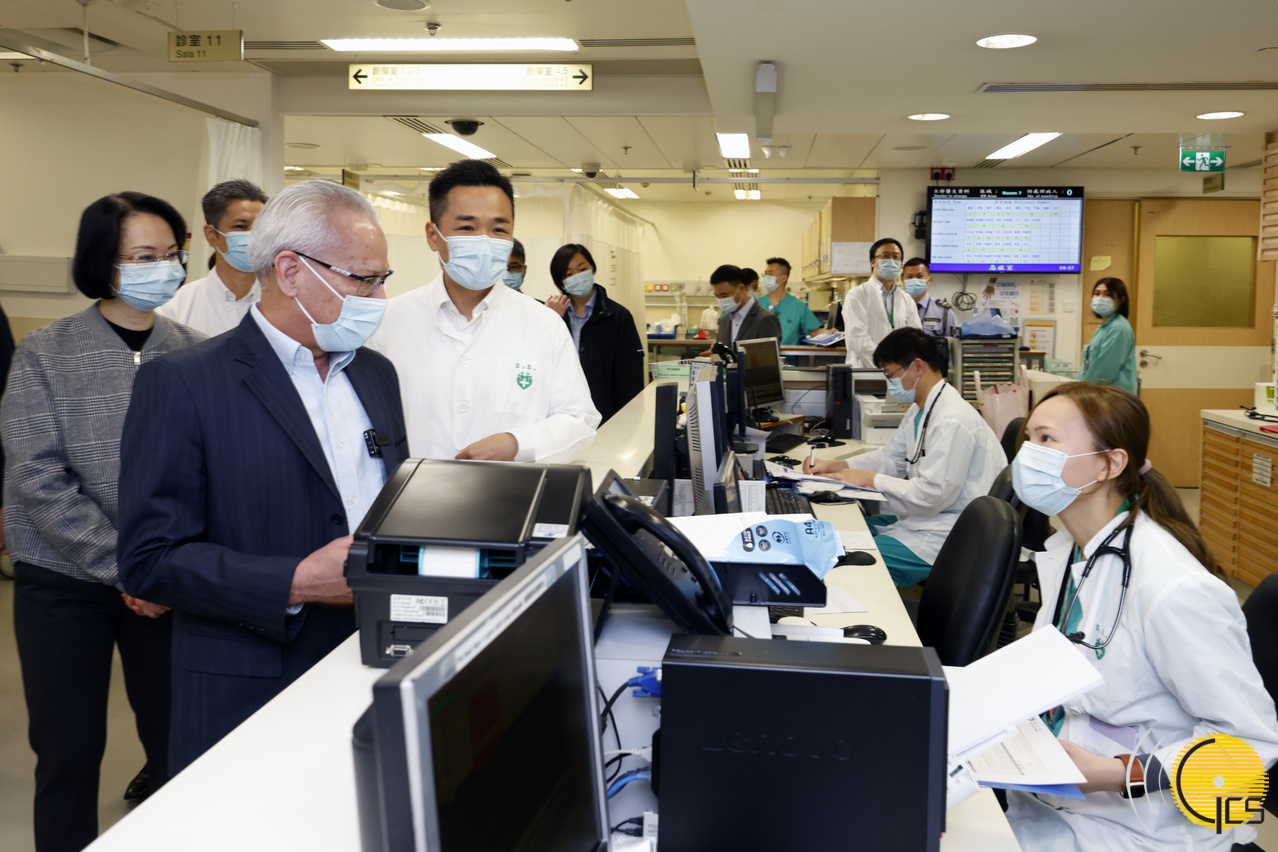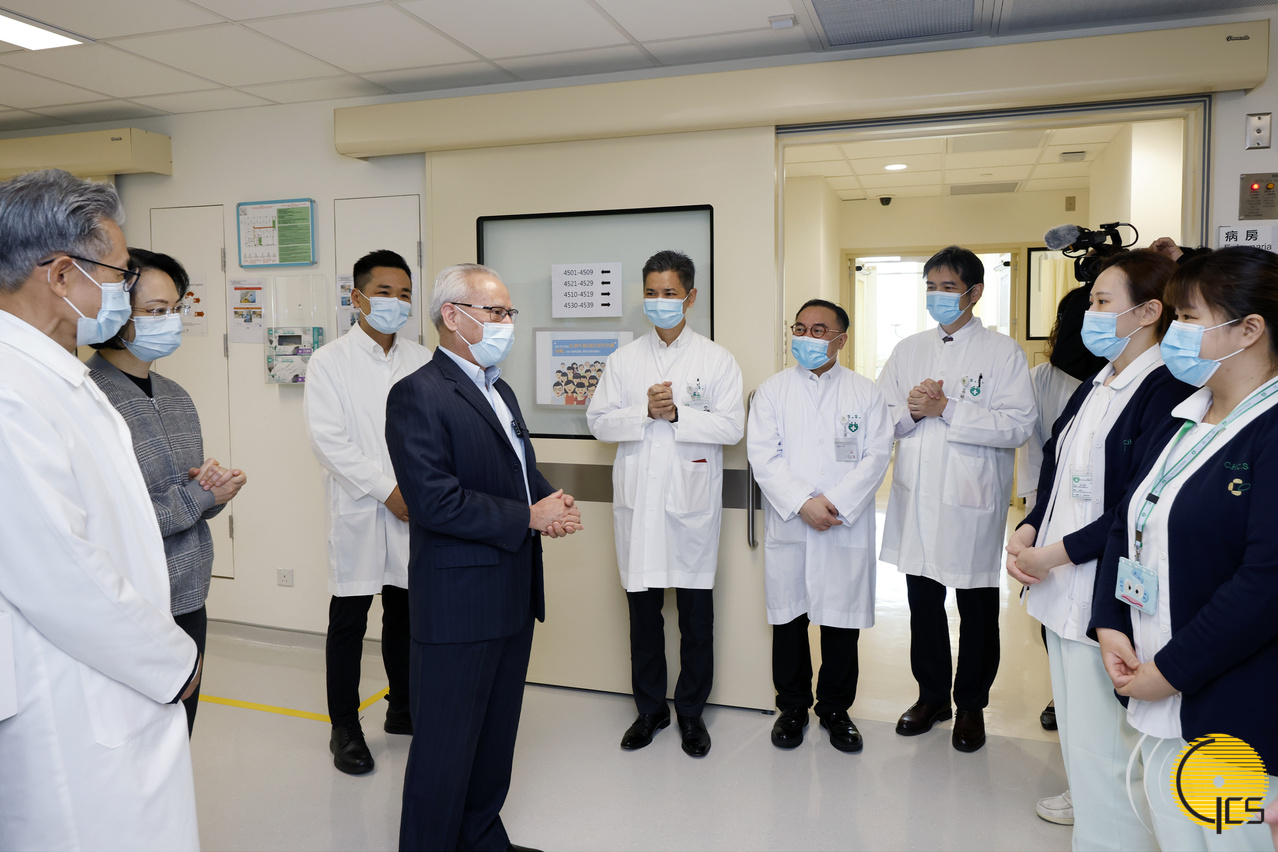 Chefe do Executivo, Sam Hou Fai, visita o Centro Hospitalar Conde S. Januário para se inteirar dos serviços médicos prestados durante o período do Ano Novo Chinês e cumprimenta os profissionais de saúde em serviço.