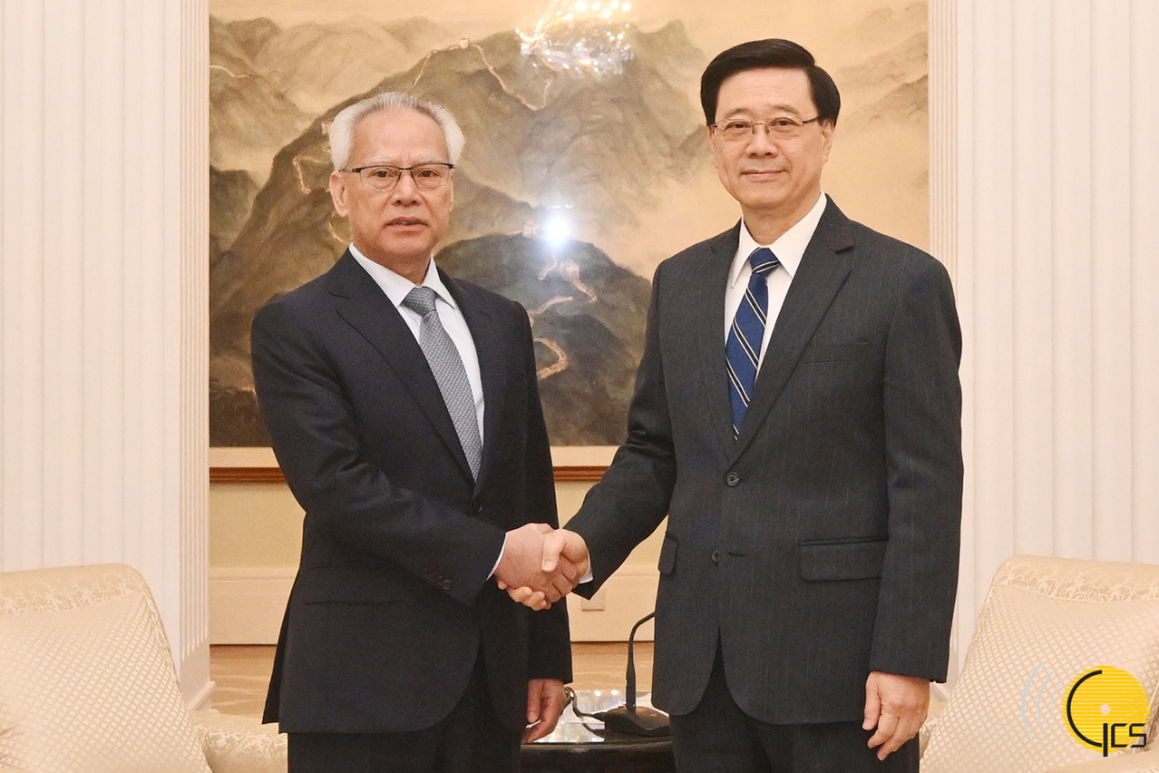 • Chefe do Executivo, Sam Hou Fai, cumprimenta o Chefe do Executivo da Região Administrativa Especial de Hong Kong, John Lee Ka-chiu.