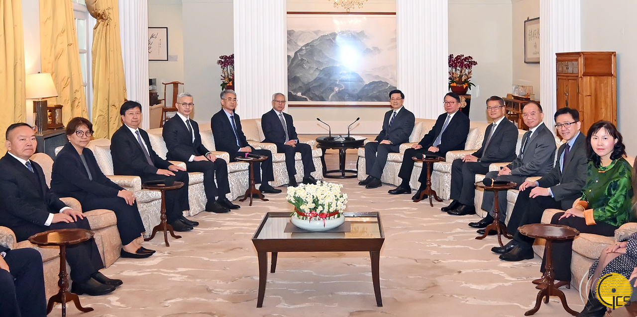 • Chefe do Executivo, Sam Hou Fai, e o Chefe do Executivo da Região Administrativa Especial de Hong Kong, John Lee Ka-chiu, na «Government House» em Hong Kong.