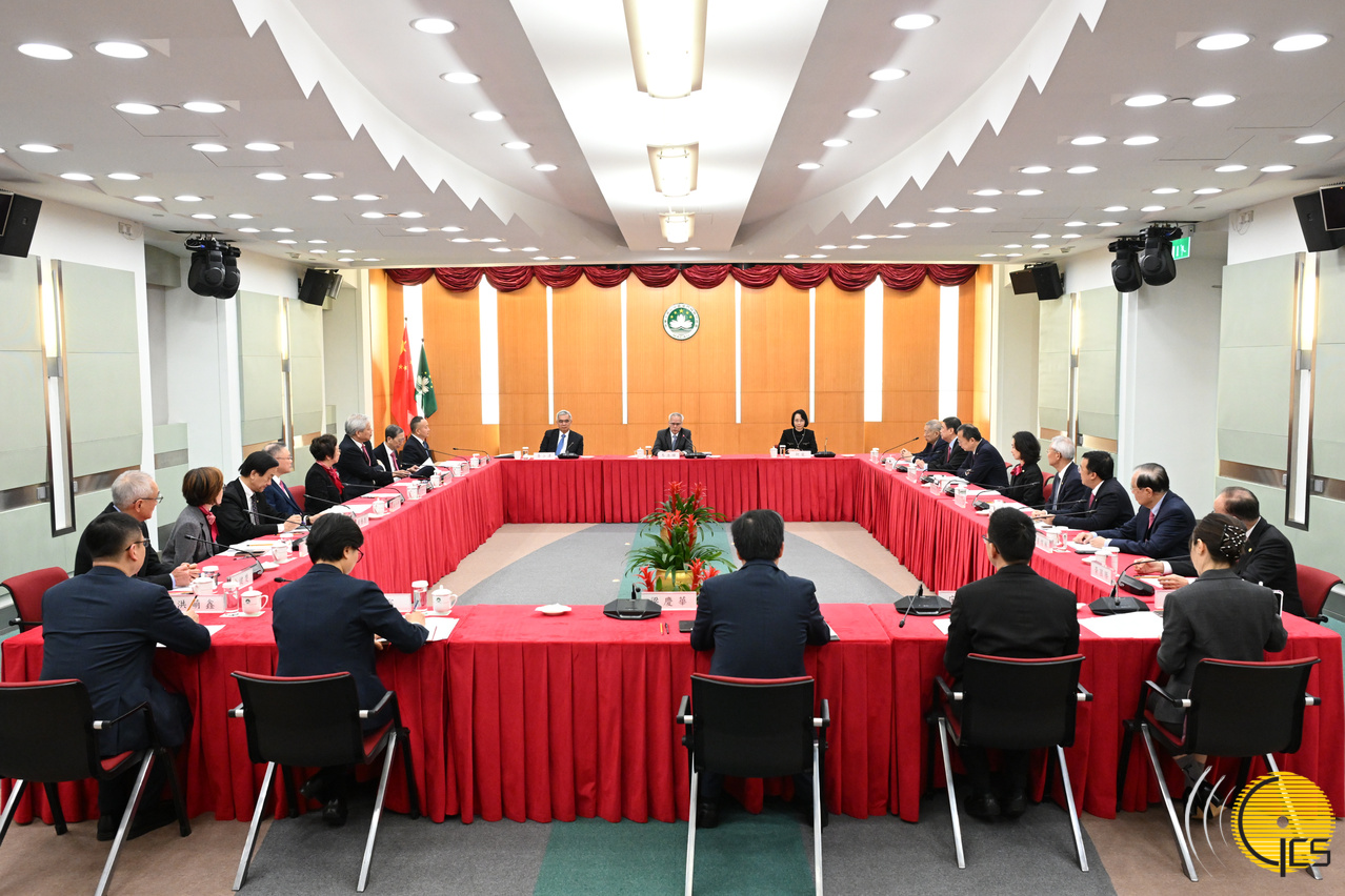 • Chefe do Executivo, Sam Hou Fai, recebe representantes da Associação Comercial de Macau para auscultar opiniões e sugestões, no âmbito da elaboração do relatório das Linhas de Acção Governativa para o ano financeiro 2025, na Sede do Governo.