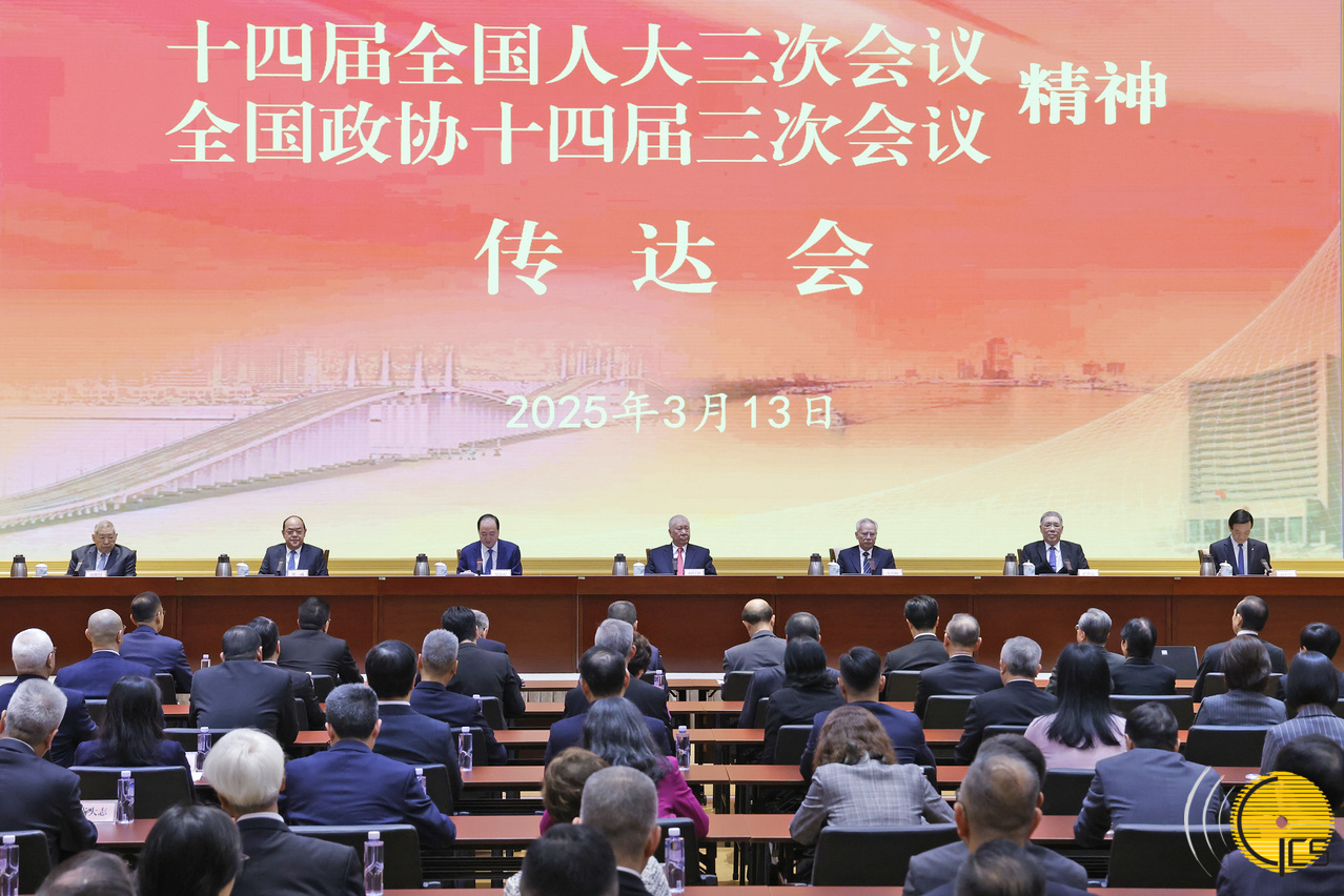 • Chefe do Executivo, Sam Hou Fai, na sessão de divulgação do espírito das «Duas Sessões» da Assembleia Popular Nacional e da Conferência Consultiva Política do Povo Chinês do Ano de 2025.