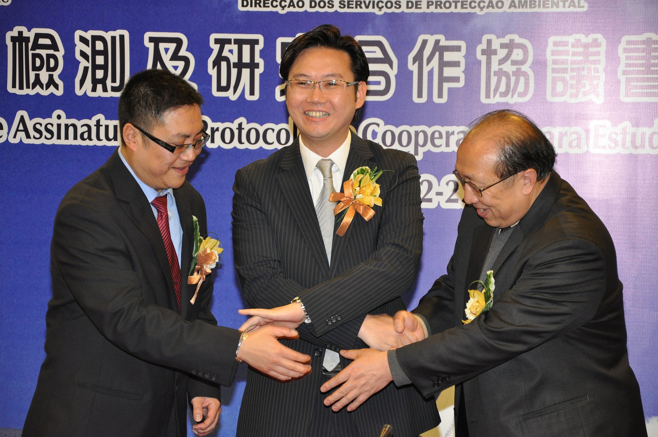 A Cerimónia de Assinatura do Protocolo de Cooperação para Estudo e Inspecção Ambiental foi realizada em 23 de Fevereiro de 2010, na sala multi-funcional da DSPA. Foram convidados trinta representantes provenientes dos serviços públicos e instituições para testemunhar a cerimónia, presidida pelo Director dos Serviços de Protecção Ambiental, Cheong Sio Kei, pelo Reitor da Universidade de Macau, Zhao Wei, e pelo Tam Lap Mou, Presidente do Instituto para o Desenvolvimento e Qualidade de Macau.