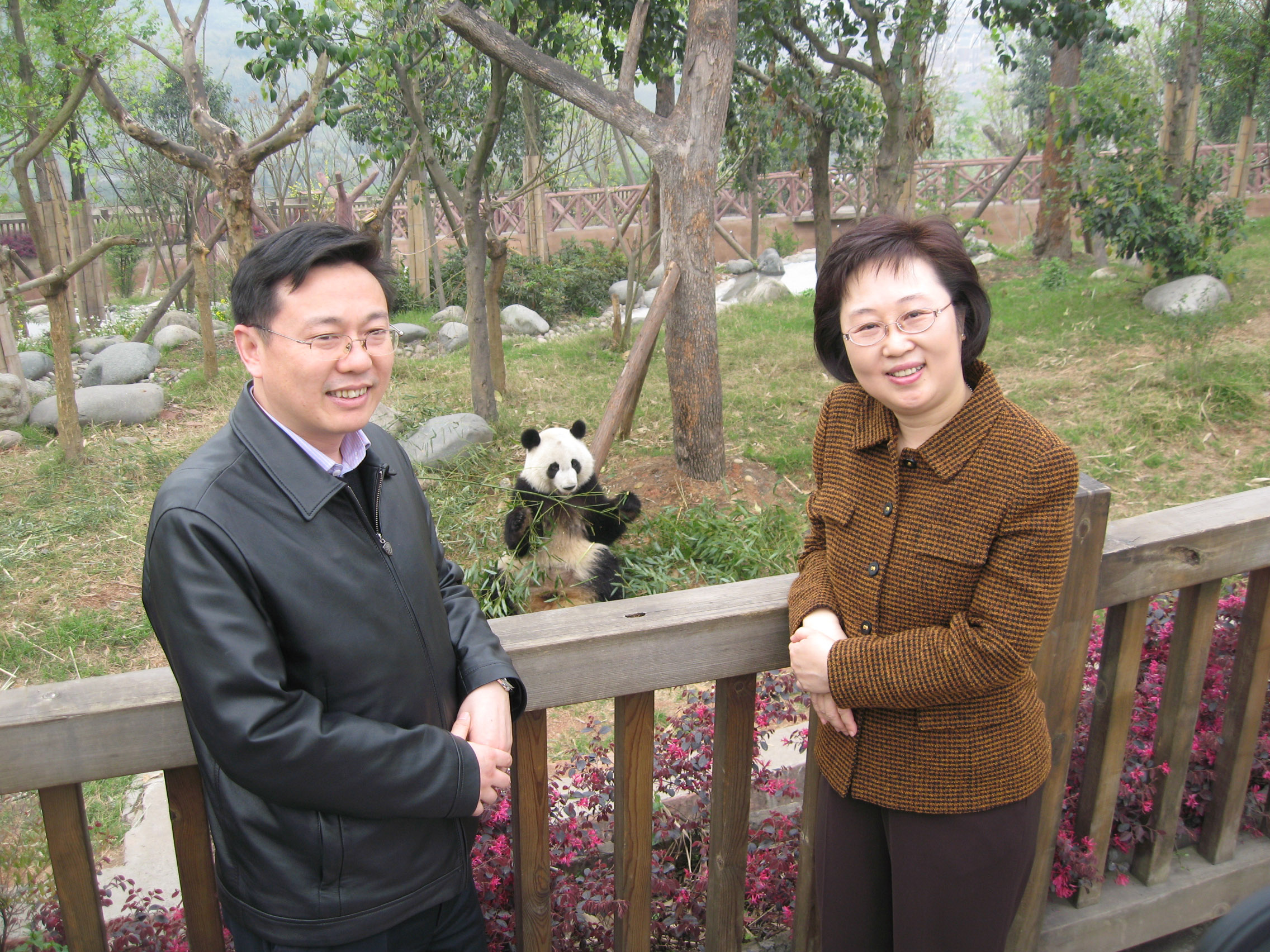 • Visita conjunta à Chengdu Research Base of Giant Panda Breeding, do director do Departamento de Ligação do Gabinete para os Assuntos de Hong Kong e Macau do Conselho de Estado, Qian Yibing, e da Secretária para a Administração e Justiça de Macau, Florinda Chan.