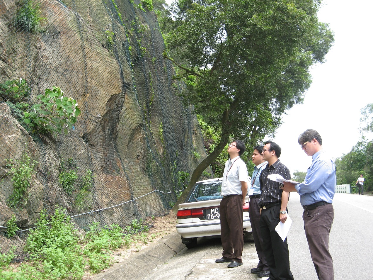 Em 2009 foi concluído a reparação de 2 grandes taludes, que se encontram respectivamente próximo ao Posto Operacional dos Bombeiros em Coloane, situado junto da Estrada do Campo, e a Estrada da Ponte de Pac On (próximo do Tempo Pequeno de Kun Iam), numa área total de 5.200 m2, sendo a reparação deste último sido realizada pelo seu proprietário. E neste ano, veio a DSSOPT, como um dos membros deste grupo de trabalho, continuar com a realização dos trabalhos de reparação dos taludes localizados nos terrenos públicos que necessitam de estabilização. E de Janeiro a Maio do corrente ano, foi concluído a estabilização do talude situado ao longo da Estrada de Sete Tanques e do talude localizado no gaveto formado entre a Estrada de Cheoc Van e a Estrada de Hác Sá, perfazendo uma área de 5.600 m2. No 2.º semestre do corrente ano, continuar-se-á dar início às obras de estabilização de vários taludes localizados nos terrenos públicos e até o 2.º semestre do corrente ano poderá ser concluído os trabalhos de reparação do talude situado junto do Parque Natural da Taipa Grande e do talude localizado entre a ETAR da Taipa e a Estrada da Ponta da Cabrita, perfazendo uma área de 6.600 m2.