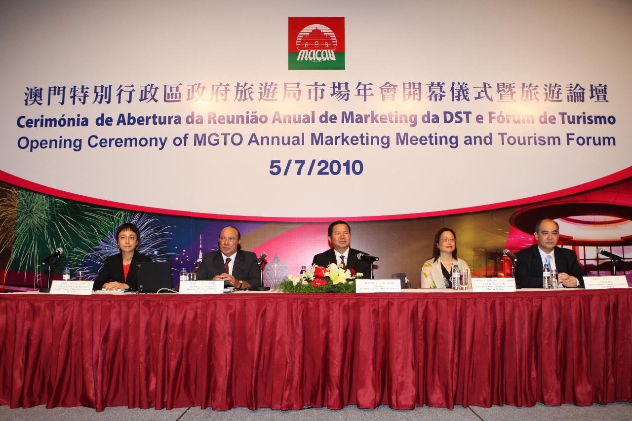 A subdirectora da DST, Maria Helena de Senna Fernandes, foi a moderadora do Fórum de Turismo. O painel de oradores incluiu o chefe de Departamento de Planeamento Urbanístico da Direcção dos Serviços de Solos, Obras Públicas e Transportes, Lao Iong, o chefe de Departamento de Planeamento e Desenvolvimento de Tráfego da Direcção dos Serviços para os Assuntos de Tráfego, Kuong Vai Cheok, o chefe do Departamento do Património Cultural do Instituto Cultural, Cheong Cheok Kio, e o chefe do Departamento de Estudos e Planeamento da DST, Cheng Wai Tong. O Fórum de Turismo foi dividido em dois painéis: Estratégias e Desenvolvimento no Curto e Médio Prazo para Macau; Turismo Cultural e Património, e E-marketing.