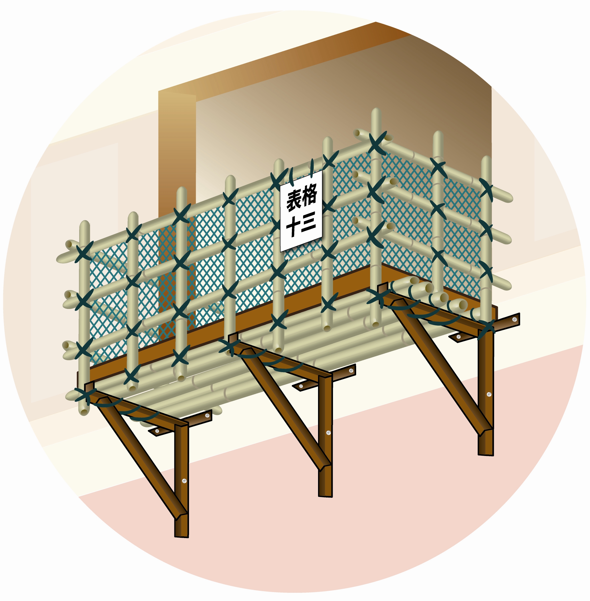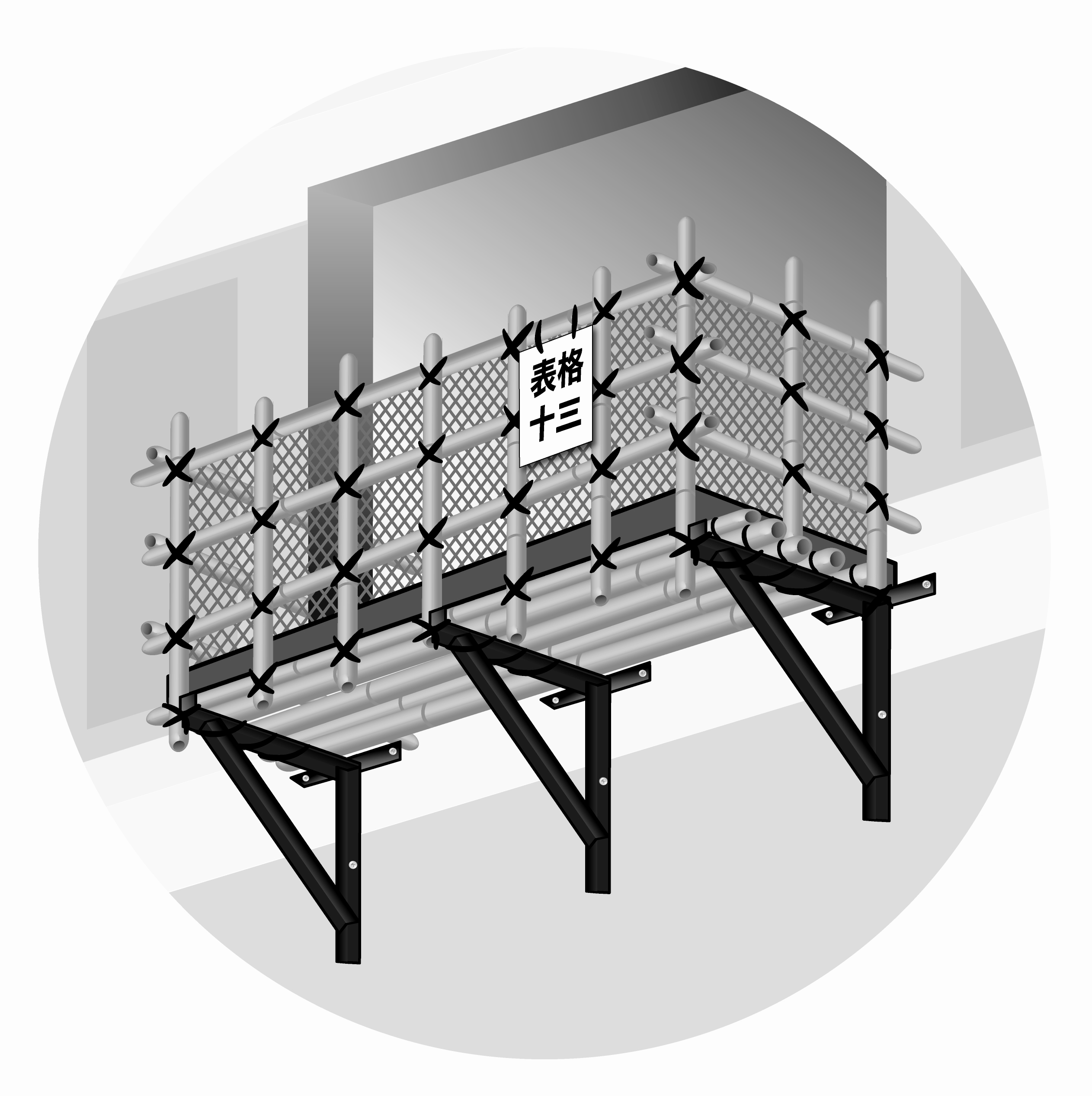 As partes constituintes dos andaimes suspensos compreendem as seguintes (vide figura):
