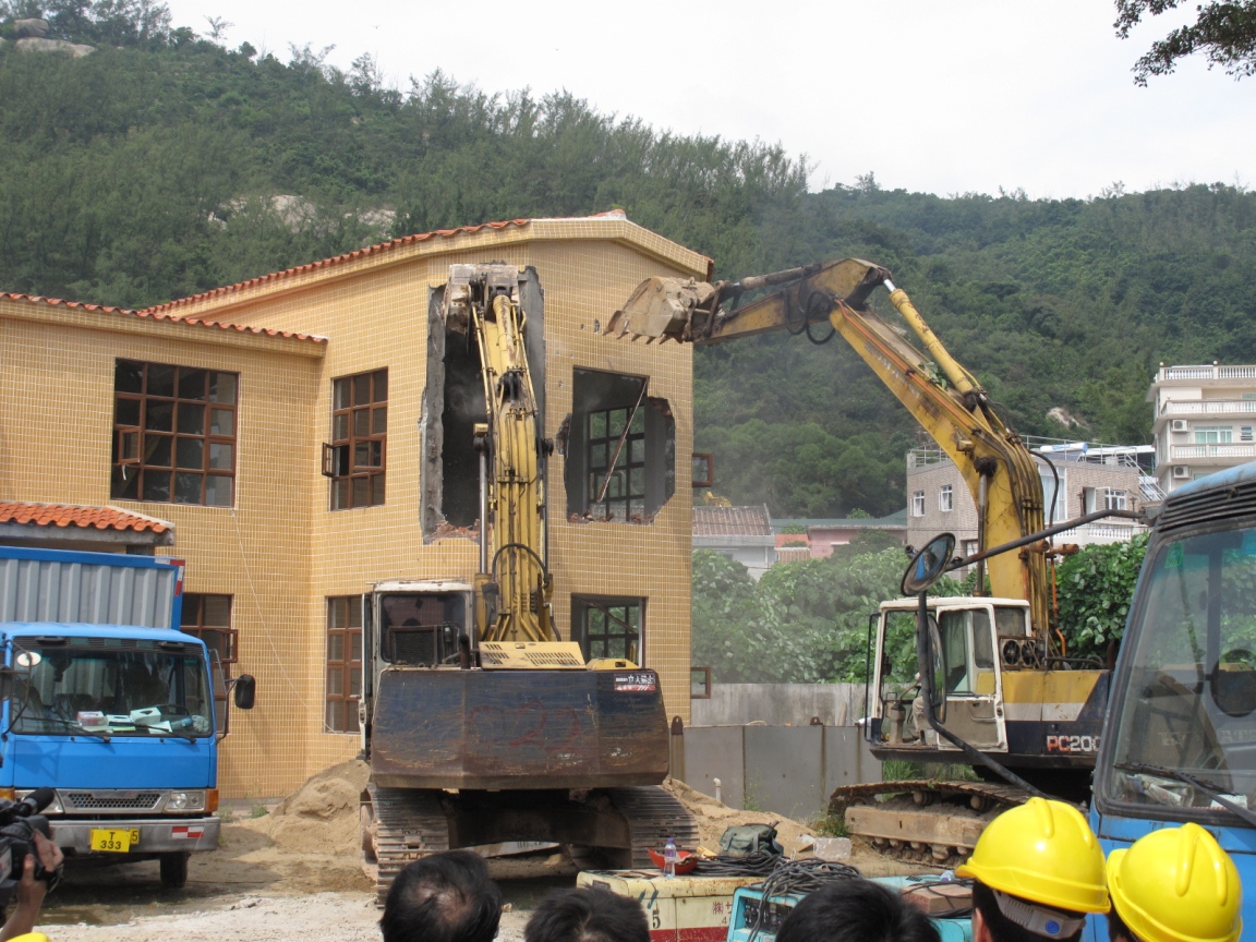 Na sequência das acções bem sucedidas de demolição e de reversão dos terrenos clandestinamente ocupados realizadas em Junho do corrente ano, vários serviços governamentais vieram hoje (dia 21) dar novamente início à acção conjunta de demolição da construção e de reversão de um terreno clandestinamente ocupado, situado na Povoação de Hác Sá. Esta obra ilegal consiste numa vivenda de grandes dimensões de 2 pisos e esteticamente bastante luxuosa. O terreno ocupado pela construção prevê a criação de jardins na parte da frente e de trás da construção, e ainda de lugar de estacionamento, ocupando uma área total de 1.600 m2 (ou seja mais de 16.000 pés quadrados), sendo esta infracção bastante voraz. Na sequência das acções bem sucedidas realizadas hoje pela Administração de despejo, reversão do aludido terreno e demolição de toda a construção, segundo as estimativas todos os trabalhos de demolição poderão estar concluídos dentro de uma semana.