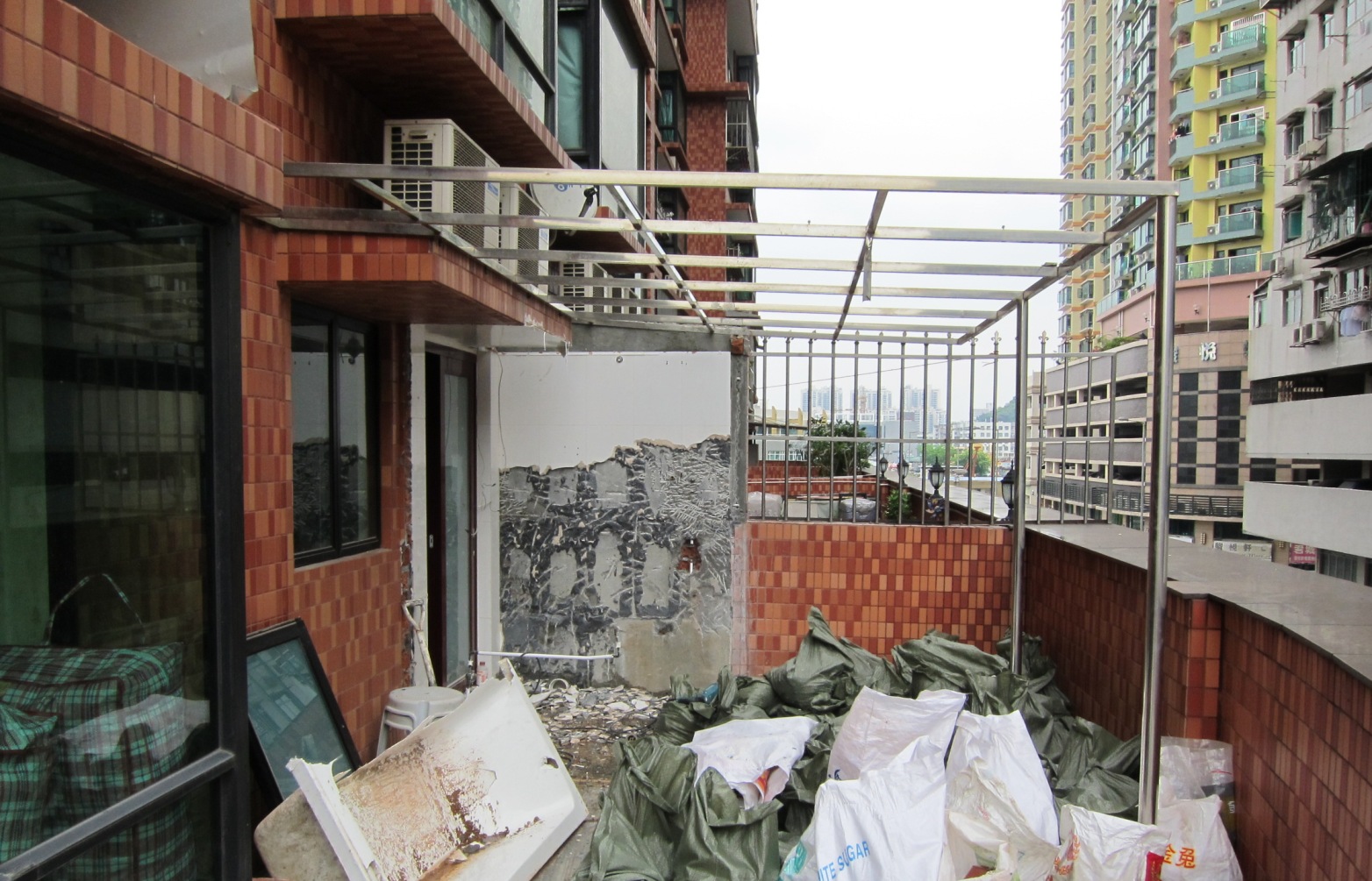 Apesar desta construção clandestina ter um aspecto exterior antigo, contudo é nova a sua decoração interior, suspeitando-se assim que veio seu infractor manter a fachada exterior da construção clandestina e alterar a sua estrutura interna, renovando assim a antiga construção clandestina executada ao nível do terraço, construindo assim uma fracção autónoma do tipo T2, com uma área de aproximadamente 550 m2, estando ainda em curso a sua decoração interior, pelo que acredita-se que está não foi ainda habitada. A construção clandestina localizada ao nível do terraço dispõe de uma escada metálica com acesso ao terraço, sendo assim uma construção clandestina localizada ao nível do terraço. Ao tratar deste caso, veio a Administração verificar que na escada de acesso entre o 5.º andar deste edifício e o terraço foi instalado um portão metálico, o que põe gravemente em causa a questão da segurança contra incêndio, pelo que em salvaguarda da segurança dos moradores do edifício, será também desmantelado este portão metálico.