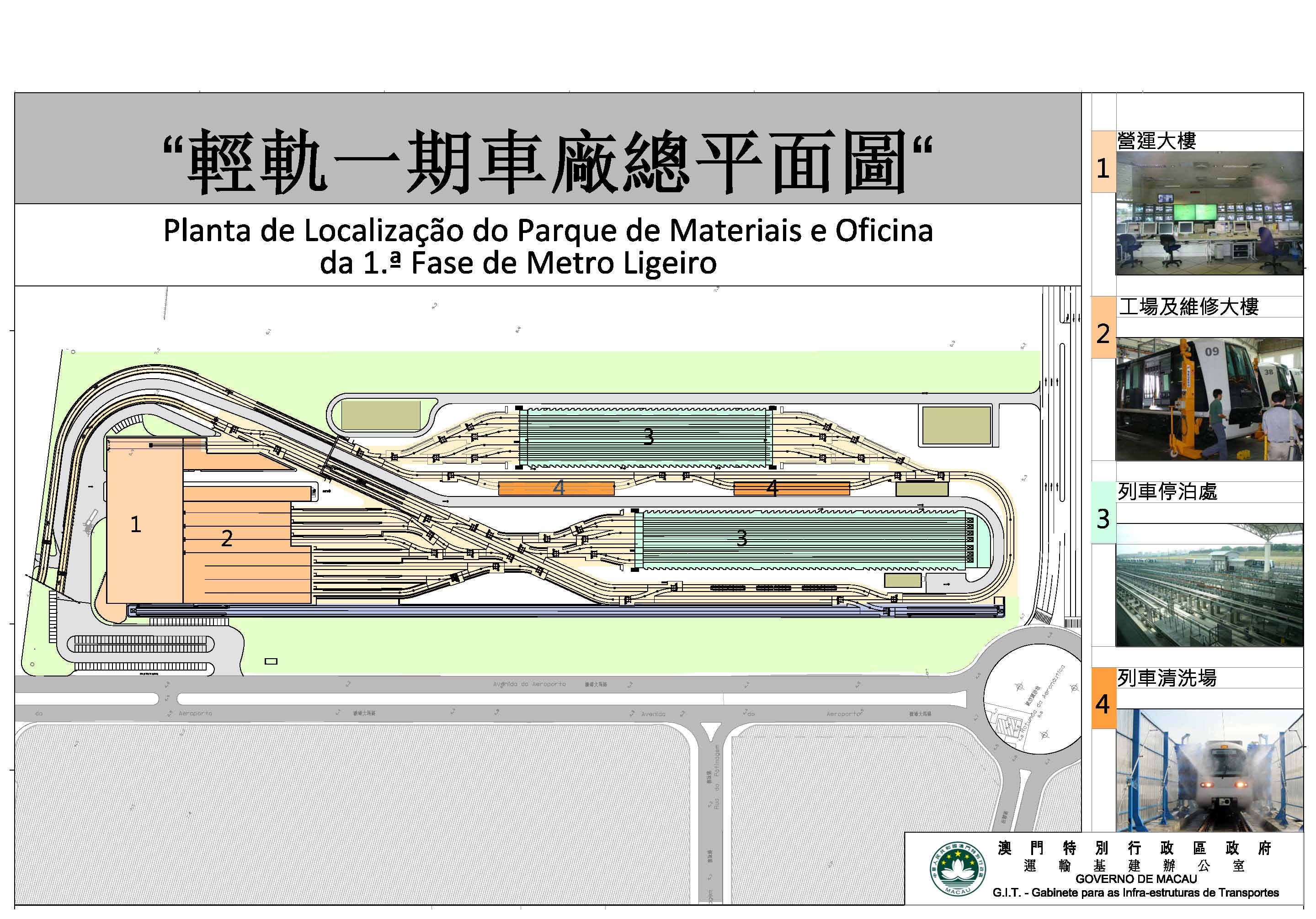 O coordenador-adjunto do GIT, Arq. André Ritchie disse que o Parque de Materiais e Oficina é uma das instalações de construção civil mais importantes do Sistema de Metro Ligeiro de Macau, o Concurso Público da Obra do Parque de Materiais e Oficina do Metro Ligeiro assinala o lançamento integral e acelerado das obras de construção civil da 1.ª Fase do Sistema de Metro Ligeiro de Macau, o concurso público da obra de construção civil do traçado e das estações do segmento do centro da Taipa do Sistema de Metro Ligeiro será lançado este ano.
