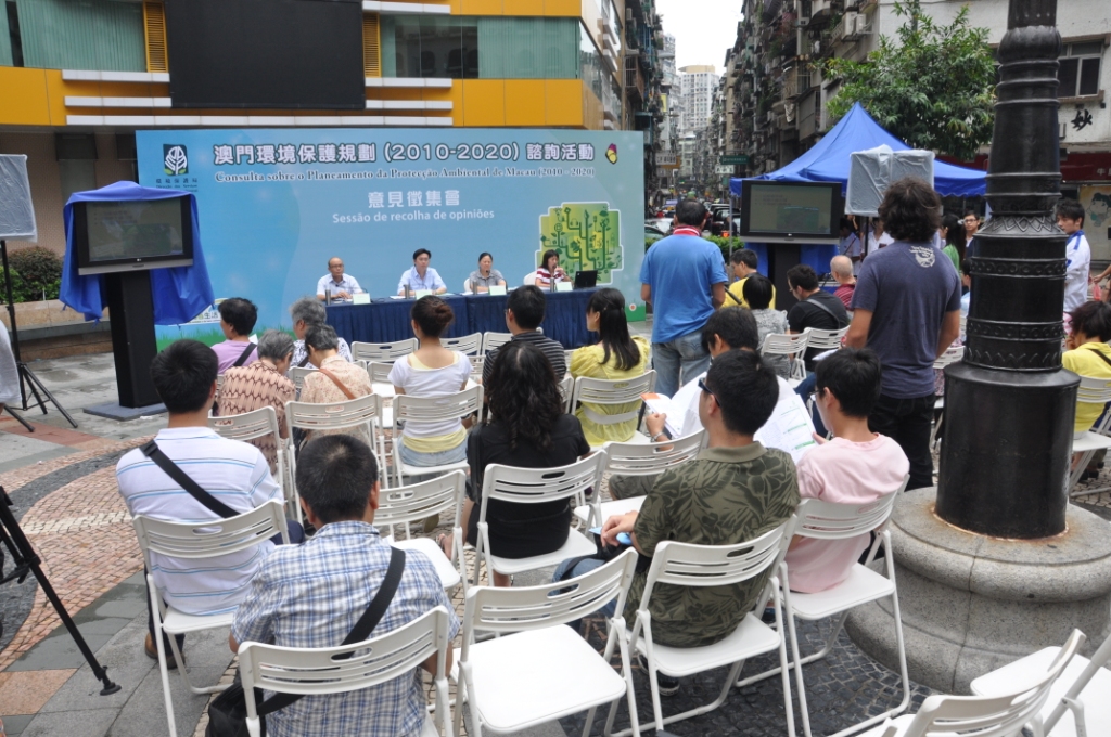Para planear a protecção ambiental de Macau até ao ano de 2020, a Direcção dos Serviços de Protecção Ambiental (DSPA), com o apoio do Instituto das Ciências Ambientais do Sul da China, do Ministério de Protecção Ambiental, elaborou conjuntamente este Documento de Consulta intitulado “Planeamento da Protecção Ambiental de Macau (2010-2020)”. O período de consulta de opiniões, com a duração de dois meses e com uma série de actividades, a desenvolver a partir de 7 de Setembro, abrange exposições itinerantes e sessões de consulta de opiniões do público, a fim de comunicar amplamente junto dos sectores, das associações relacionadas e dos cidadãos. A primeira sessão de consulta de opiniões do público foi realizada hoje, dia 11 do corrente mês, na zona de lazer da Rotunda de Carlos da Maia, em Macau. A DSPA espera, através das actividades de consulta de opiniões, recolha e auscultação das opiniões da comunidade, promover a construção conjunta de um futuro de Macau de baixo carbono e a partilha de uma vida ecológica, impulsionando o desenvolvimento sustentável de Macau.