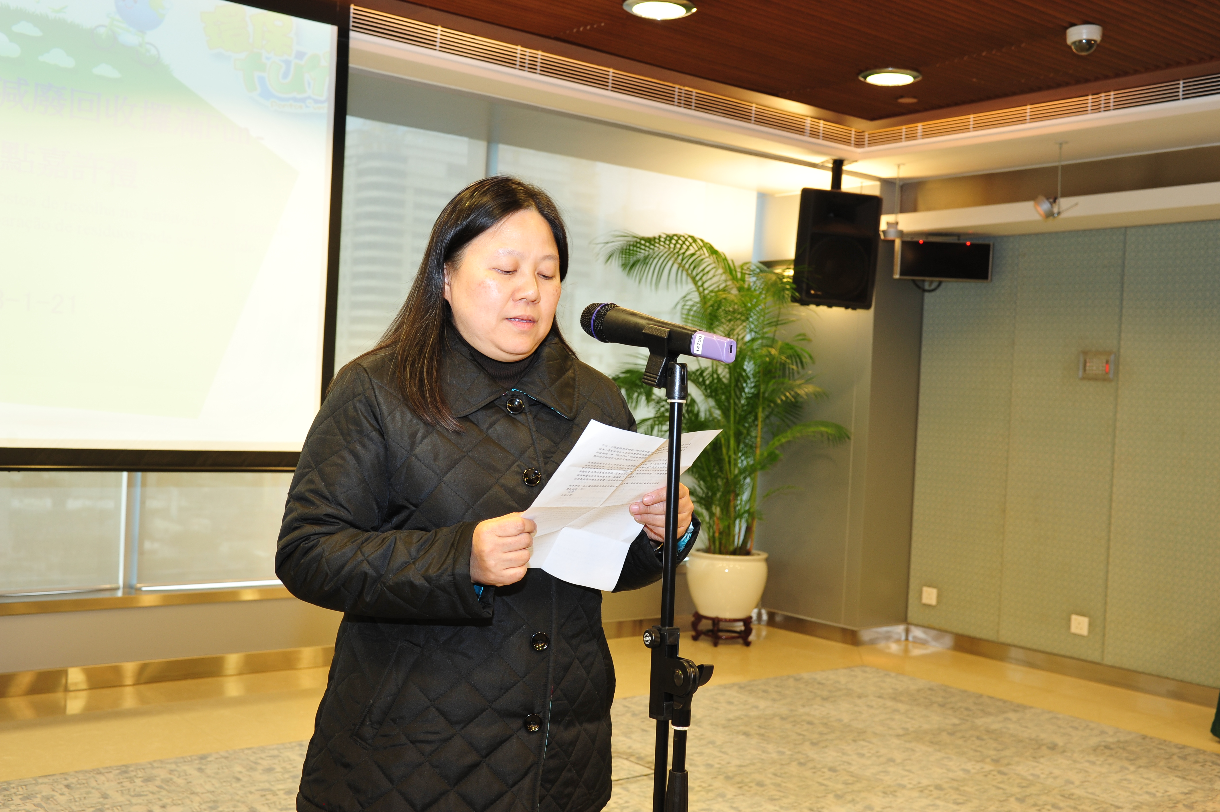 Na cerimonia de entrega de louvores, a subdirectora da DSPA, Vong Man Hung e a presidente do Conselho Administrativo da UGAMM, Ng Siu Lai, entregaram louvores aos representantes dos 12 postos de recolha e aos do Edifício Nga Lim e do Edifício Yue Xiu Gardens, seguindo-se a apresentação, pelos responsáveis dos postos de recolha, do funcionamento dos postos de recolha, divulgando o significado e a missão dos postos de recolha no âmbito do Programa e partilhando as suas experiências sobre o apoio nas actividades promocionais ambientais nos bairros comunitários, expondo como se deve transmitir amplamente o conceito ambiental e impulsionar a prática do mesmo na vida quotidiana.