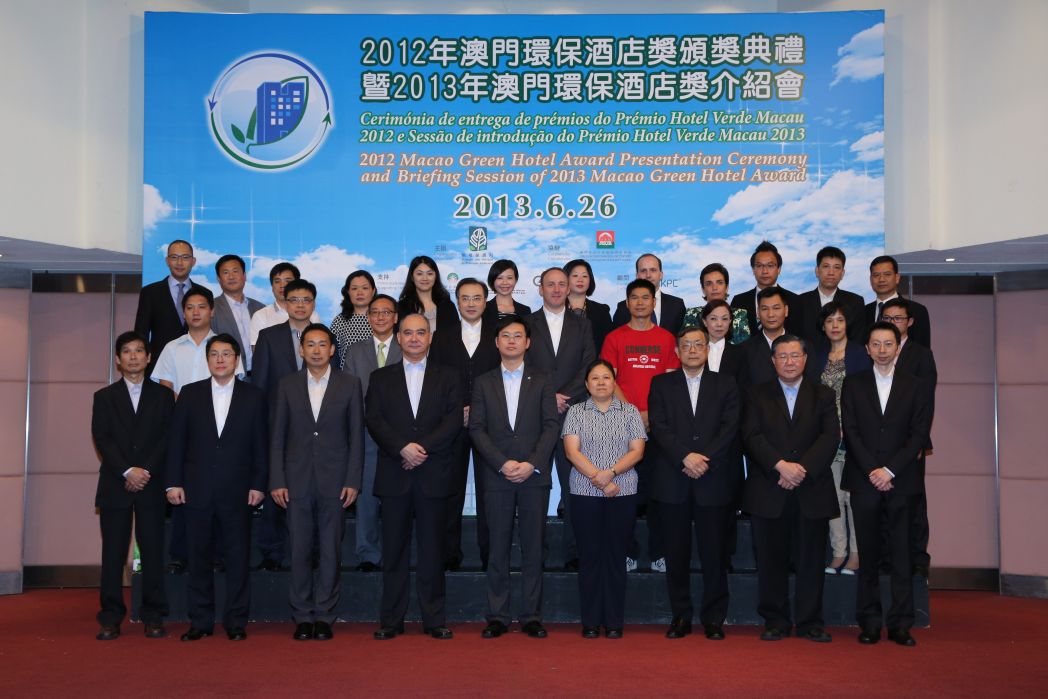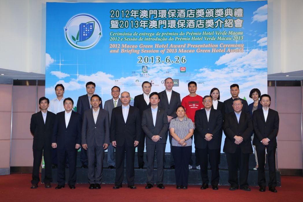 A “Cerimónia de entrega de prémios do Prémio Hotel Verde Macau 2012 e a sessão de introdução do Prémio Hotel Verde Macau 2013” foi realizada solenemente hoje (26 de Junho), às 15h00 horas, na Sala Flor de Lótus do World Trade Centre, em Macau, tendo por objectivo elogiar os hotéis premiados por terem contribuído para a preservação do ambiente e para impulsionar o melhoramento contínuo dos comportamentos ambientais dos hotéis, permitindo que o sector hoteleiro conheça melhor a importância da gestão ambiental para a elevação da sua competitividade e das suas vantagens, e do seu desenvolvimento sustentável.