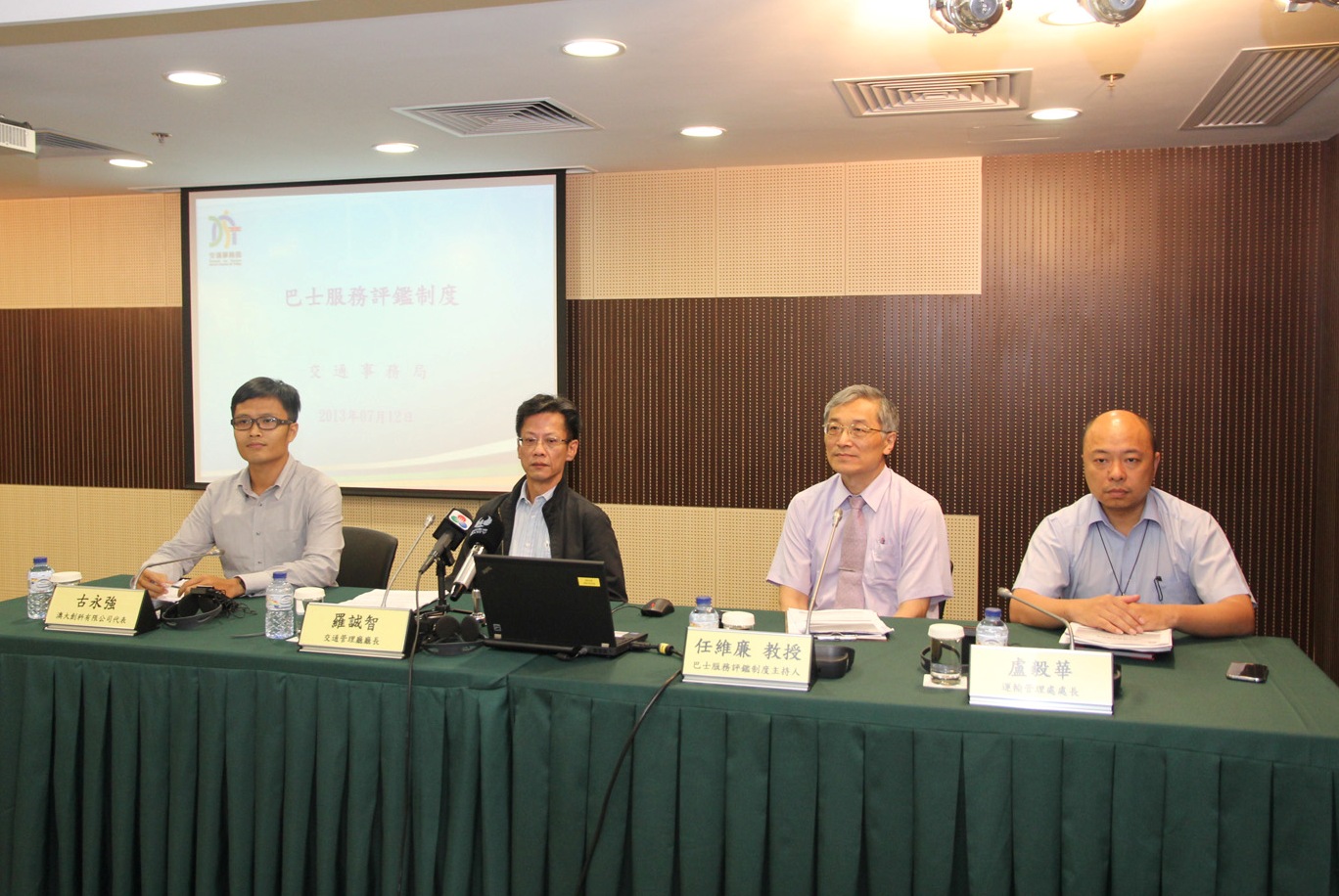 A equipa que executa a primeira avaliação dos serviços de autocarros em Macau é constituída pela UMTEC, pelo professor catedrático da Universidade Chiao Tung de Taiwan, por William Jen, e pela THI Consultants Inc. Macau Branch. O quadro do regime de avaliação foi concluído preliminarmente em finais de 2012, e na sequência disso, alguns indicadores foram sujeitos a avaliação experimental, para examinar a sua operacionalidade. No seguimento da melhoria preliminar do regime de avaliação, a equipa de investigação e o pessoal de fiscalização da DSAT deram início de forma abrangente em Março deste ano à avaliação experimental de campo, no intuito de testar e resolver as questões que eventualmente existissem, através de dados concretos, para que haja uma boa preparação para o lançamento definitivo da avaliação. Em paralelo, para aumentar o grau de participação do público no regime de avaliação dos serviços de autocarros, os “Amigos de Autocarros” foram também convidados, durante a avaliação experimental na investigação independente da avaliação dos serviços de autocarros, cujo resultado de investigação foi utilizado para comparação e análise perante o resultado obtido pela equipa de investigação, de forma a avaliar se os critérios de classificação de alguns indicadores eram ou não próximos da expectativa do público.